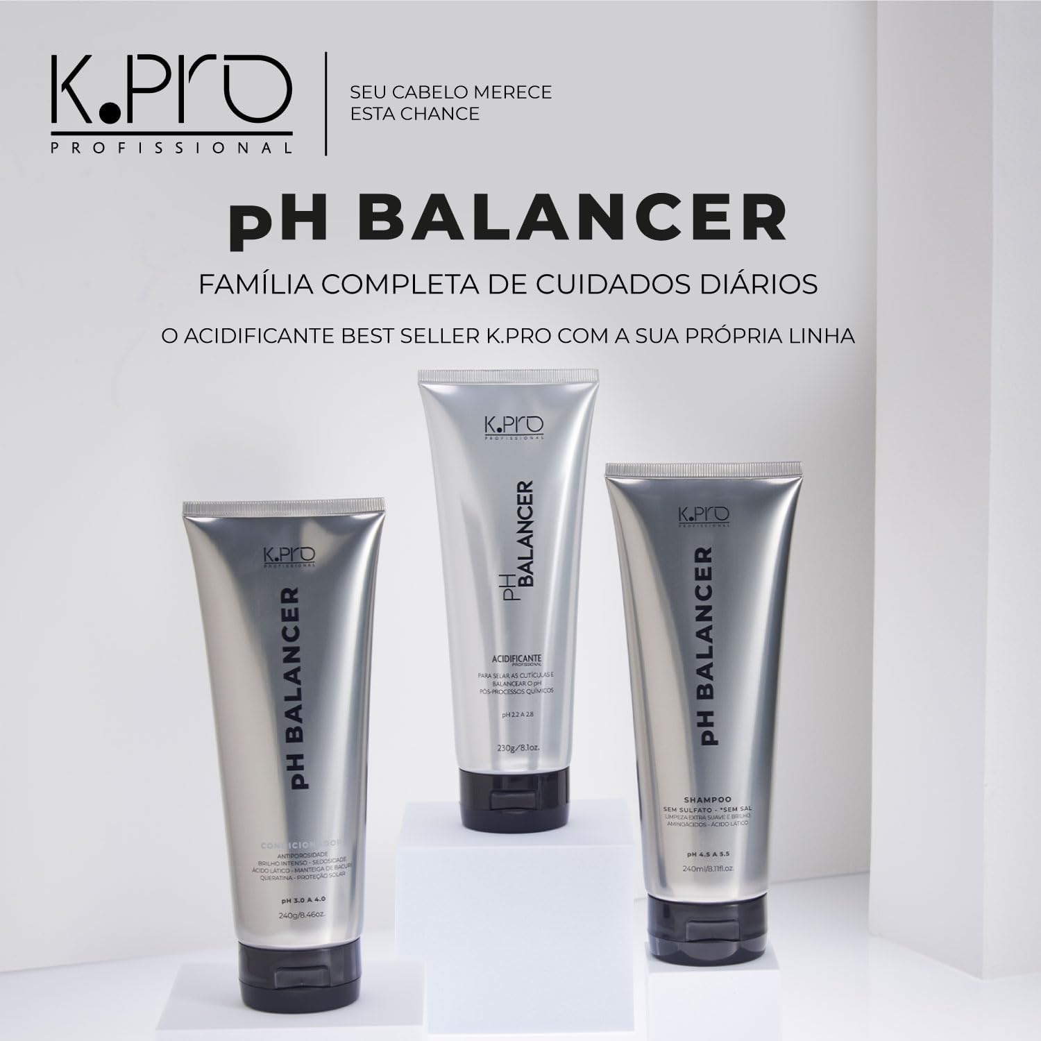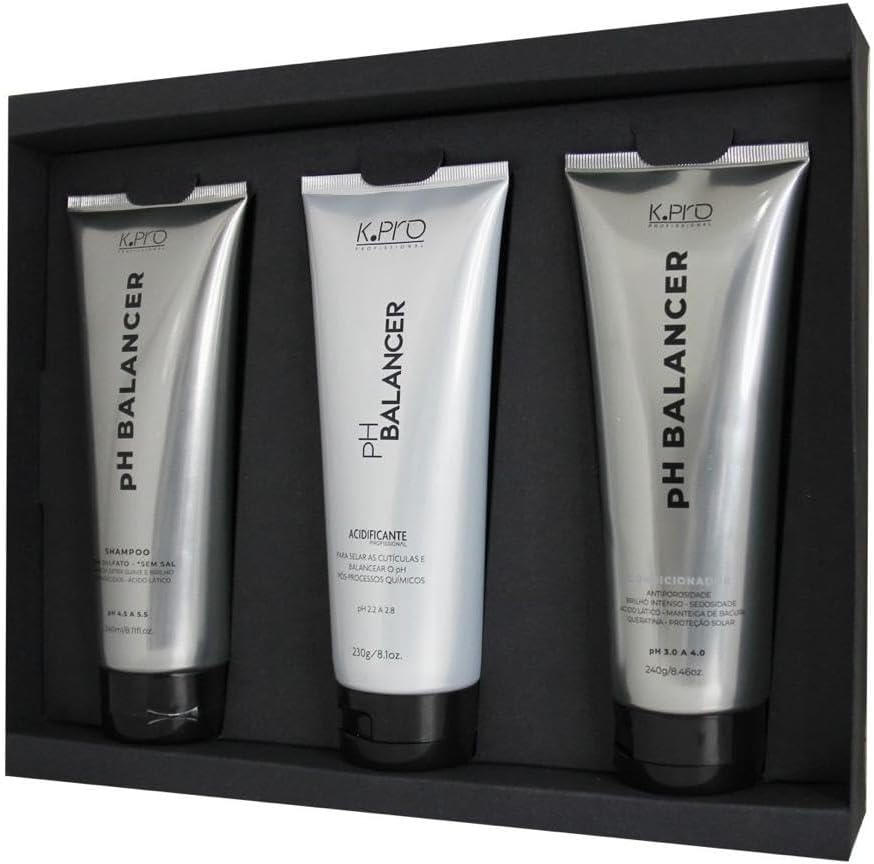 O kit K.pro Balancer PH trio é rico em ácido lático e belnd de algas marinhas que equilibram o ph das raízes às pontas do cabelo, com inovadora tecnologia que transforma essa experiência cosmética em um processo de proteção e equilíbrio ao couro cabeludo, inibindo as irritações causadas pelos processos químicos e oxidativos.