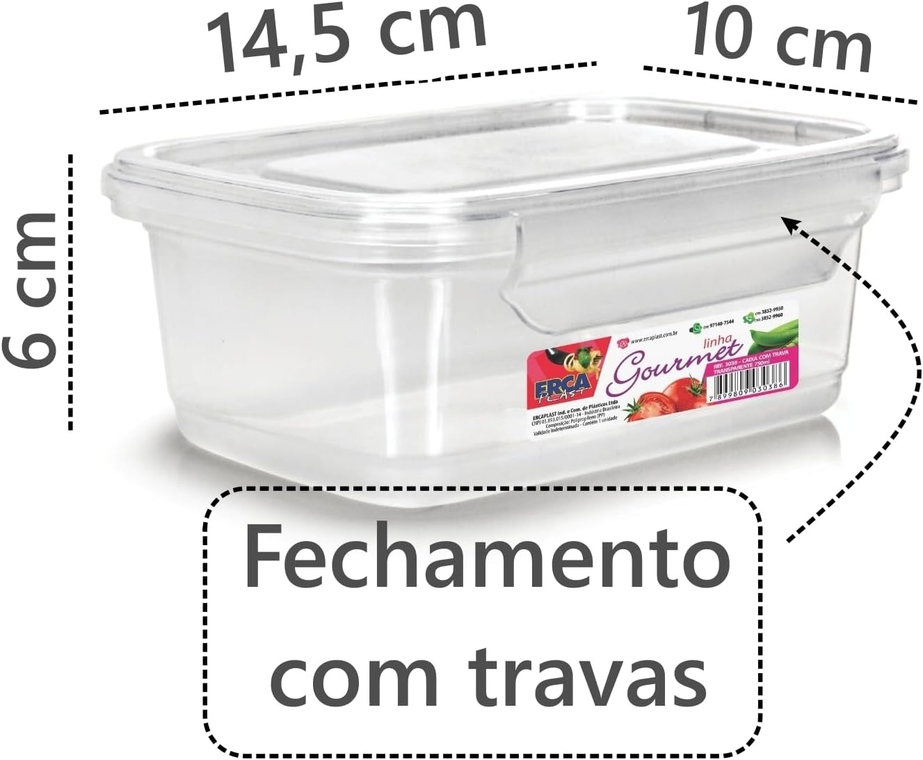 Este kit com 6 potes herméticos de 400ml é a solução perfeita para organizar e conservar seus alimentos com praticidade e segurança. Com dimensões de 14,5 cm de comprimento, 10 cm de largura e 6 cm de altura, estes recipientes transparentes são ideais para armazenar porções individuais, lanches, sobras de refeições e ingredientes preparados. O sistema de fechamento com travas garante vedação hermética, mantendo seus alimentos frescos por mais tempo e evitando vazamentos indesejados. Fabricados em material BPA Free, estes potes são seguros para contato direto com alimentos e podem ser utilizados tanto no freezer quanto no micro-ondas, oferecendo máxima versatilidade no seu dia a dia. A transparência do material permite visualizar facilmente o conteúdo armazenado, facilitando a organização da sua cozinha e geladeira. Além disso, são compatíveis com lava-louças, tornando a limpeza rápida e conveniente. Este conjunto é perfeito para quem busca praticidade na preparação de marmitas, organização de ingredientes ou armazenamento de alimentos diversos, combinando funcionalidade e durabilidade em um único produto.