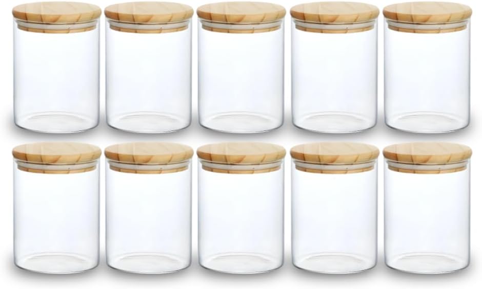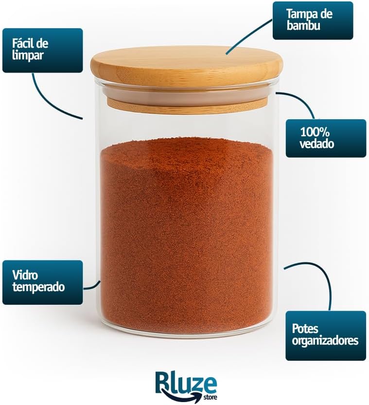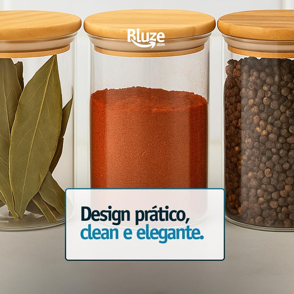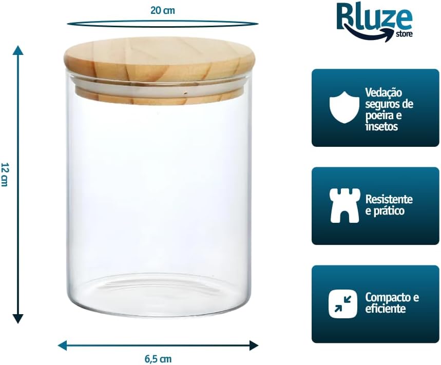 Kit 10 Potes de Mantimentos Herméticos 300ml Pote Redondo de Vidro Tampa De Bambu Premium