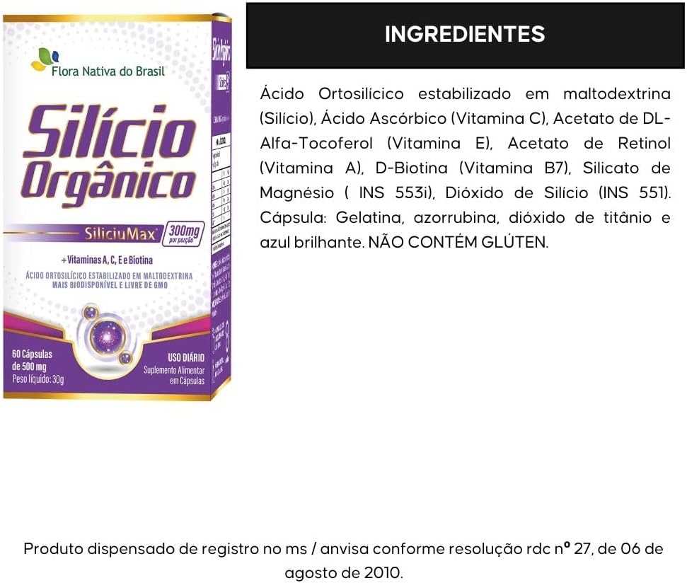 KIT com 2 unidades de Silício Orgânico SiliciuMax + Vitaminas 500mg da marca Flora Nativa com 60 Cápsulas cada.