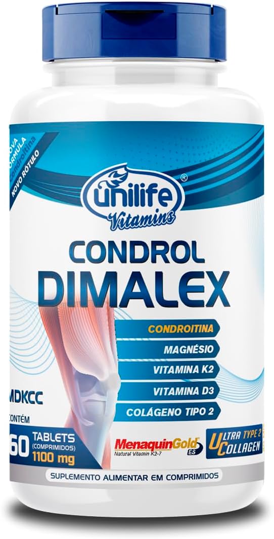 Condrol Dimalex 1100mg Unilife – 60 Comprimidos Descubra a excelência do Condrol Dimalex 1100mg da Unilife, uma escolha ideal para quem busca um complemento alimentar de alta qualidade. Formulado sem glúten e lactose, este suplemento é perfeito para aqueles com restrições alimentares, oferecendo segurança e bem-estar. Com cada dose, você obtém um potente complexo vitamínico que inclui Vitamina C, Magnésio, Vitamina K2 e Vitamina D3, nutrientes essenciais que contribuem para o seu dia a dia. A Vitamina C é conhecida por suas propriedades antioxidantes, o Magnésio é vital para diversas funções biológicas, a Vitamina K2 apoia a saúde óssea e a Vitamina D3 é crucial para a manutenção do equilíbrio mineral. Condrol Dimalex 1100mg é sem glúten e lactose. Recomendado para pessoas com 19 anos ou mais. Escolha Condrol Dimalex 1100mg e sinta a diferença de um suplemento feito para atender às suas necessidades nutricionais.