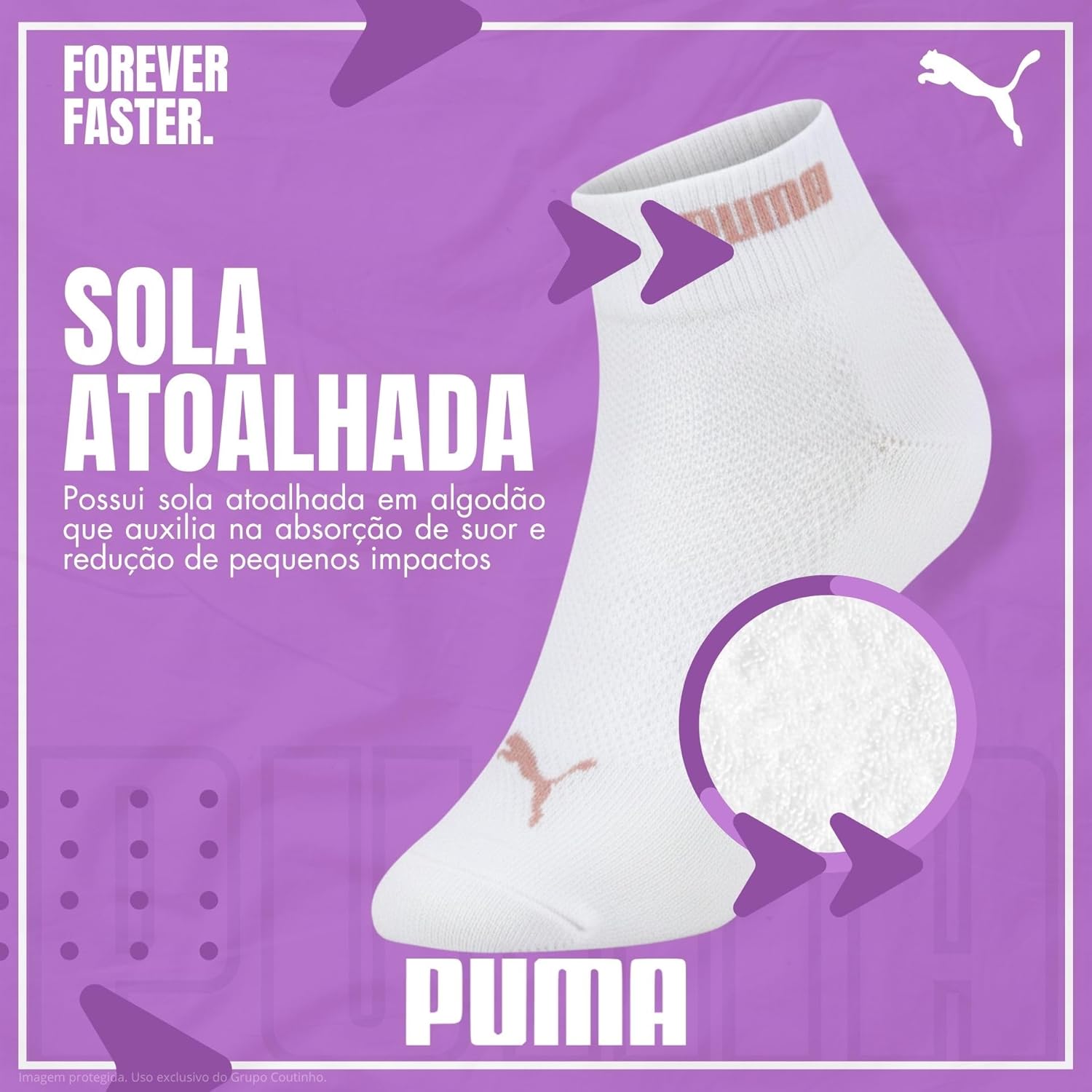 Kit 3 Pares de Meia Puma Feminina Cano Curto Academia Esportiva Original
