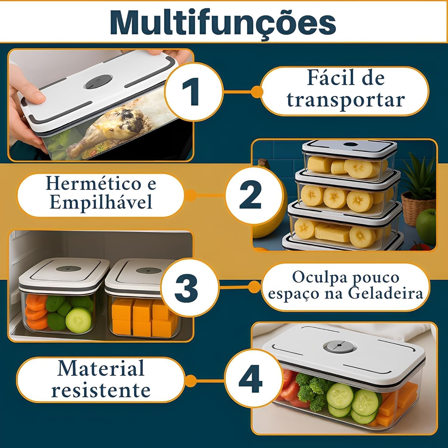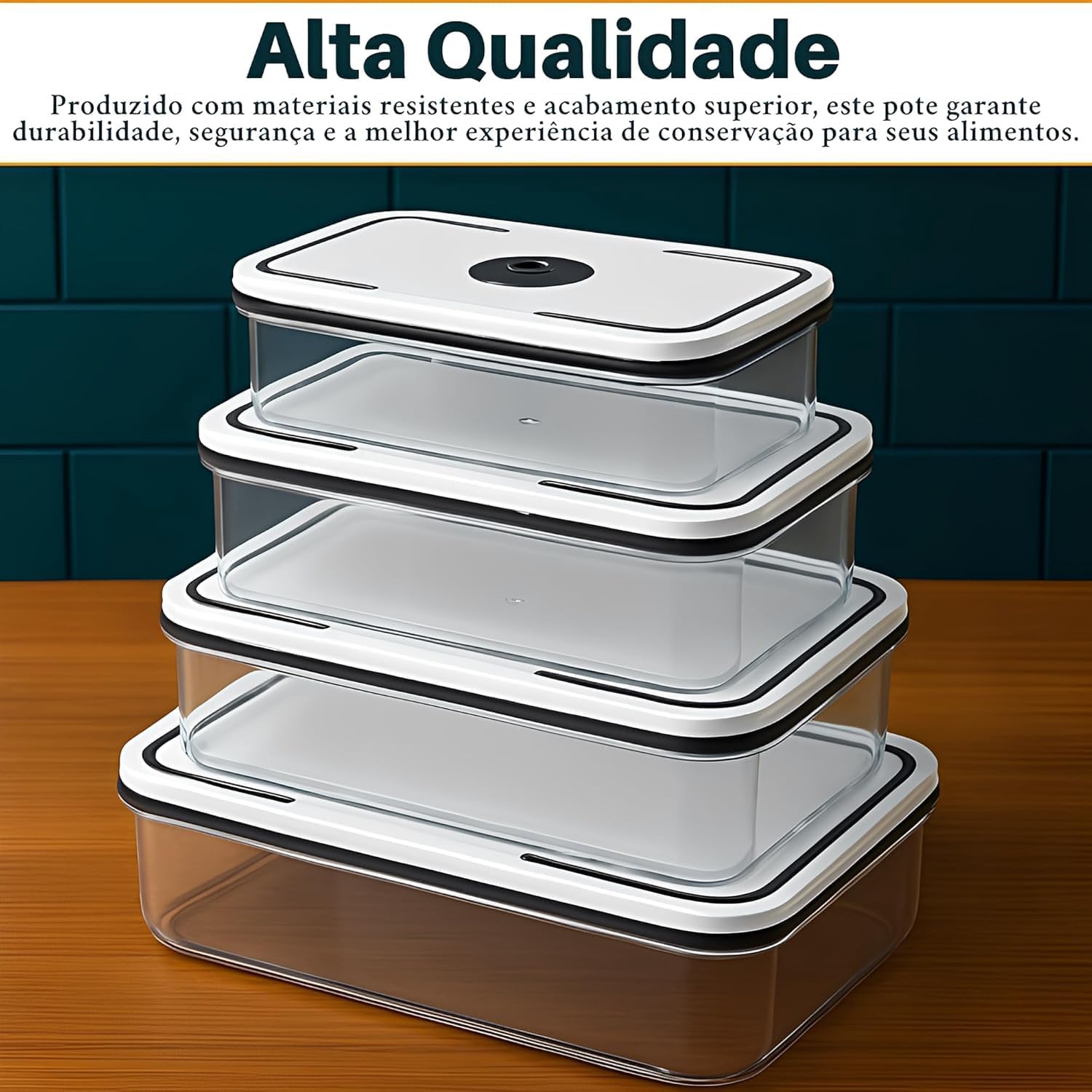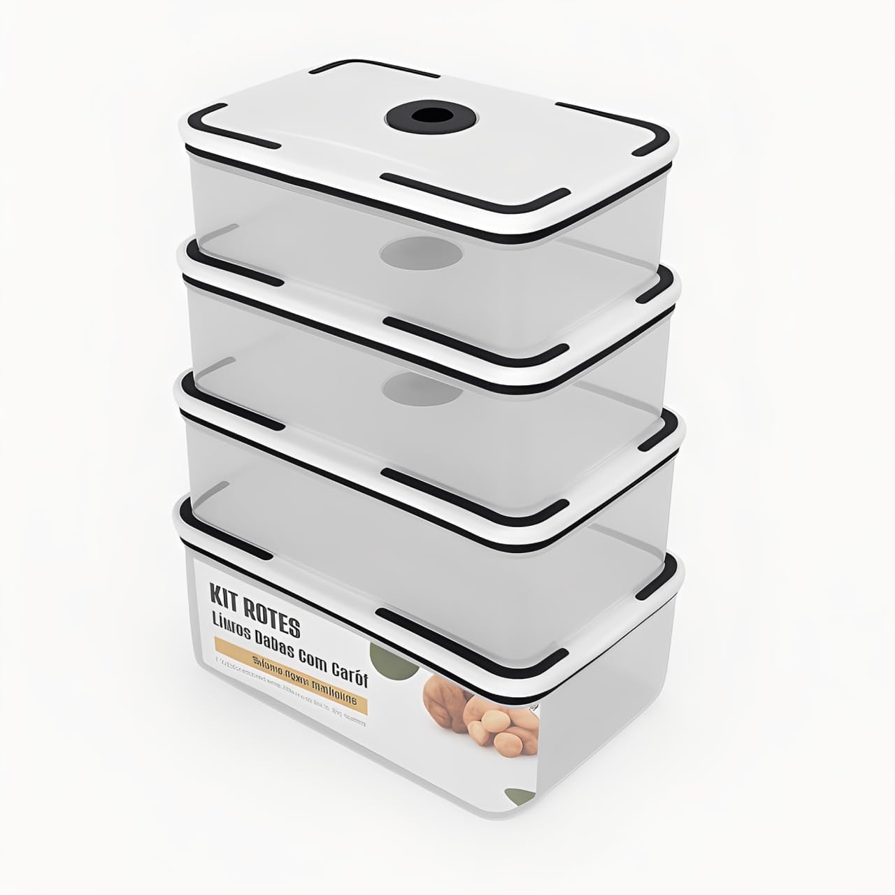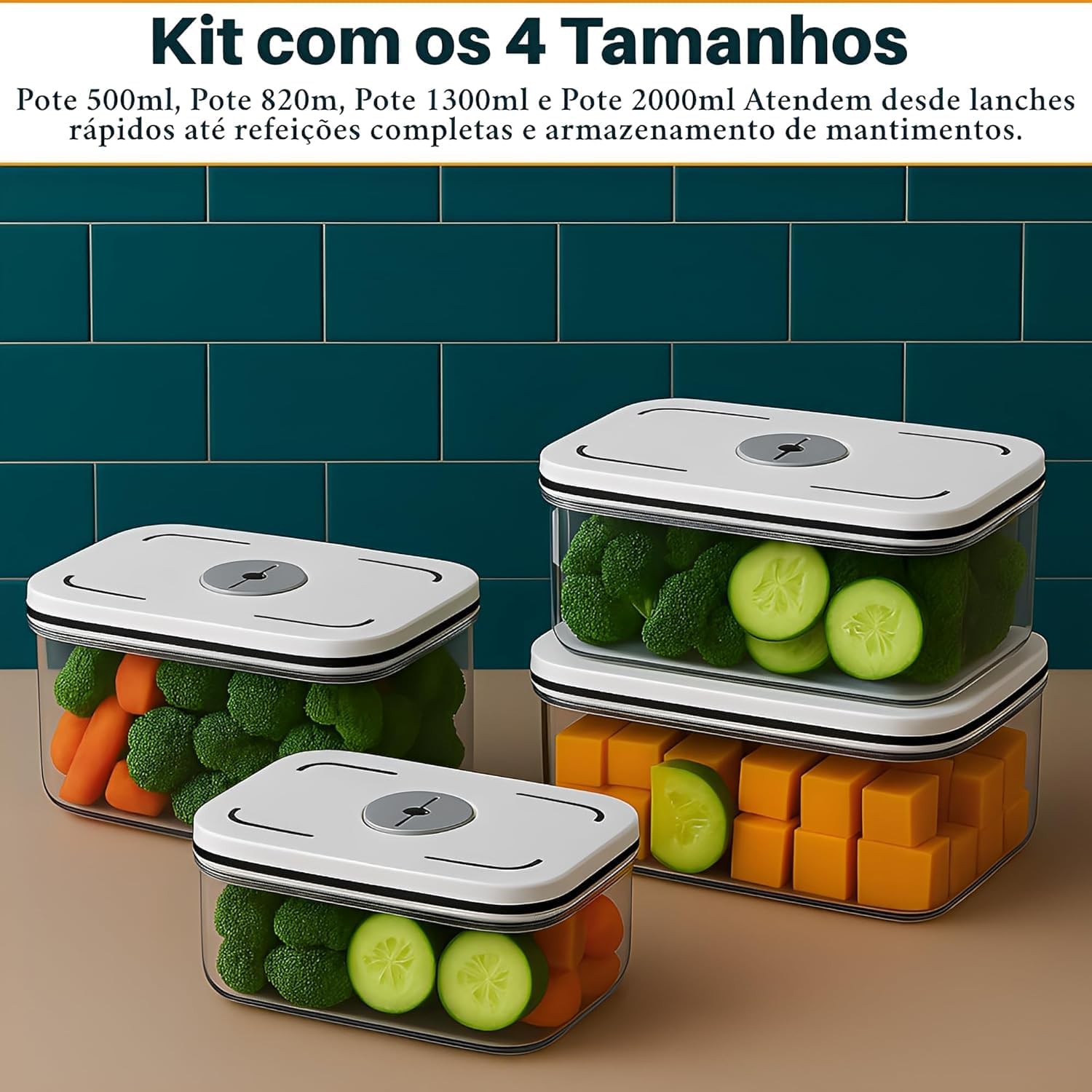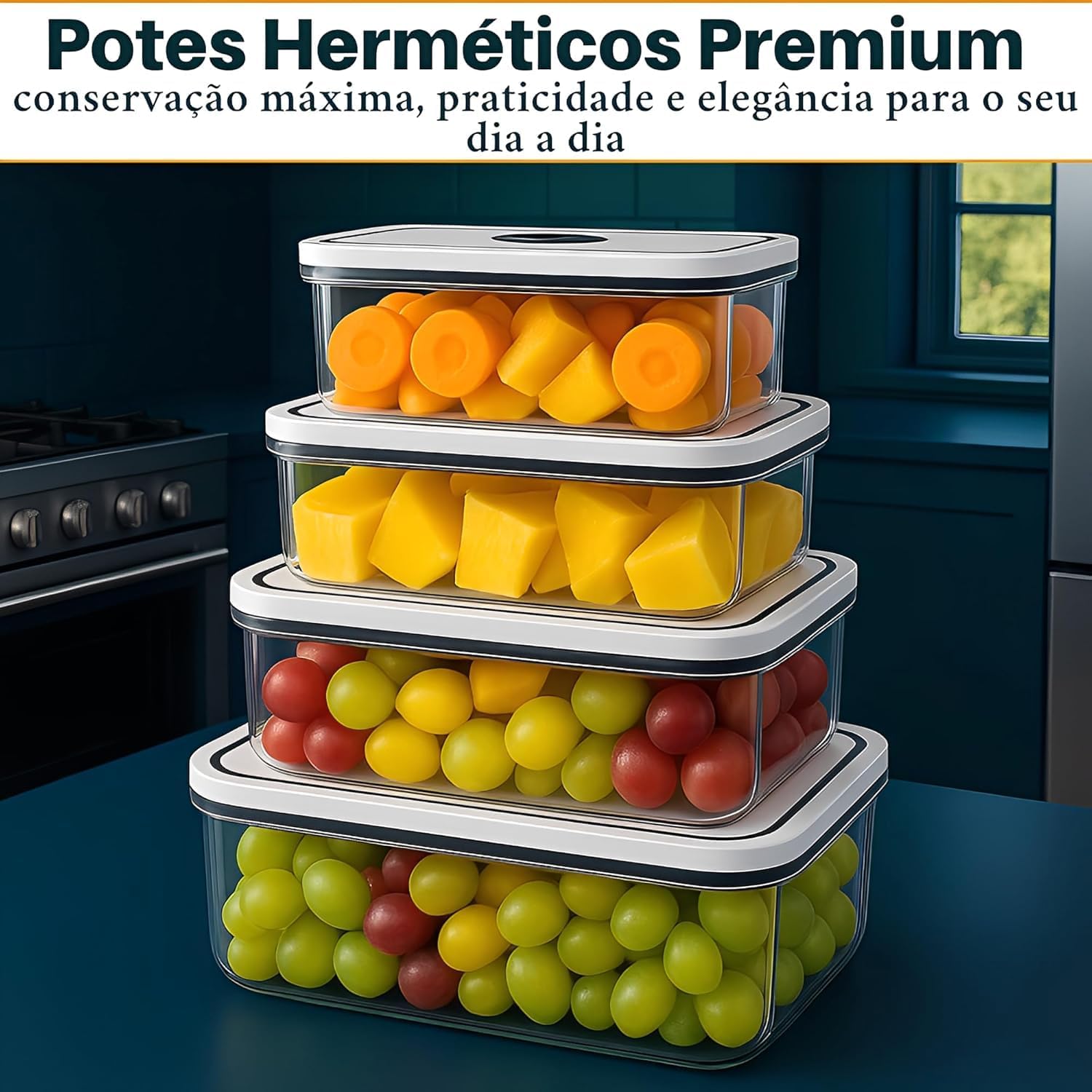 Kit 4 Potes Herméticos para Alimentos – Armazenamento Seguro e Antivazamento, Tampa Hermética Borracha Isolante, Ideal para Freezer/Microondas – Organizador de Frutas Legumes e Saladas