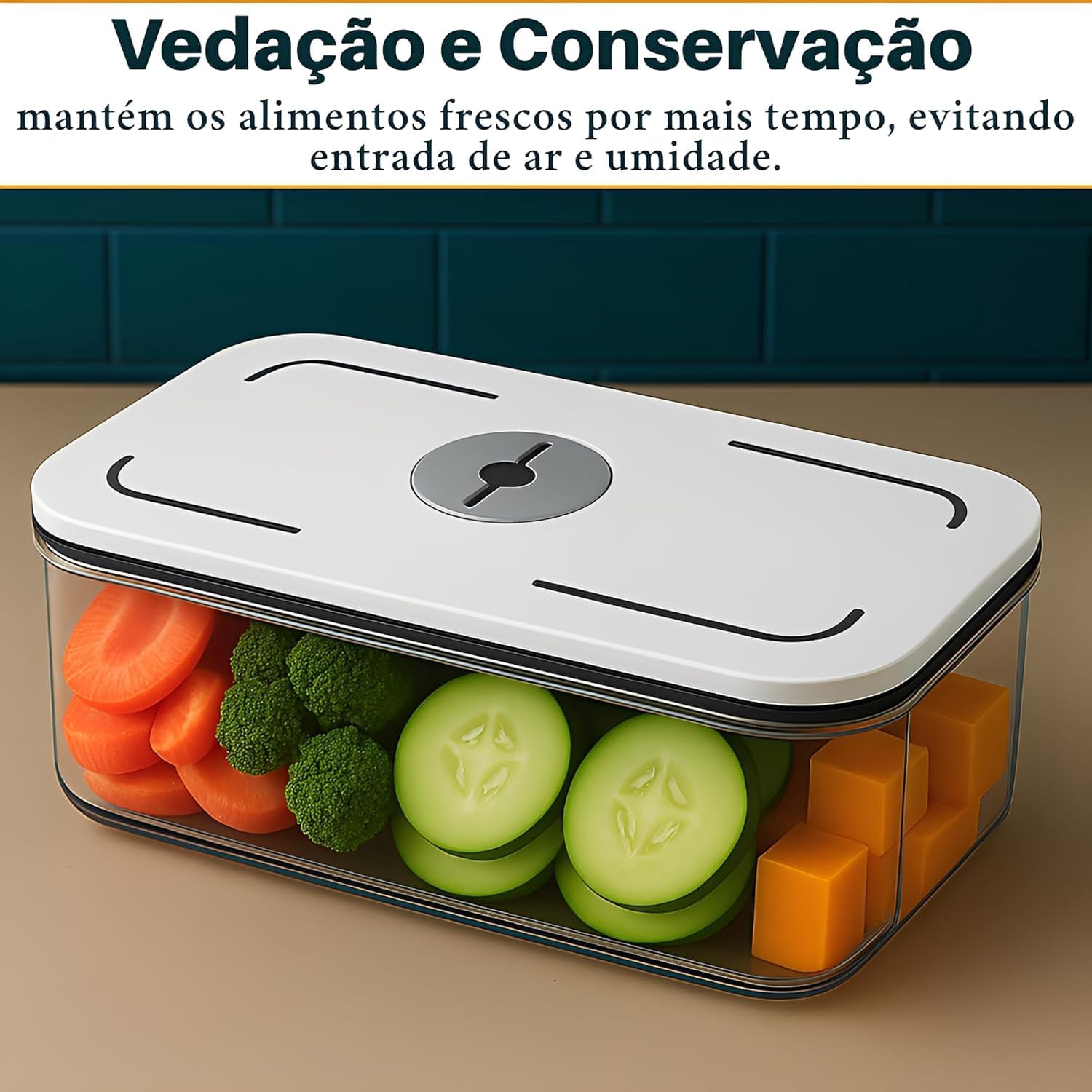 Material de Alta Qualidade Produzido em plástico resistente, livre de BPA, garantindo segurança e durabilidade no uso diário. Tampa com Vedação Hermética Possui sistema de fechamento que ajuda a manter os alimentos frescos por mais tempo, evitando entrada de ar e umidade. Capacidade Generosa Design retangular e espaçoso, ideal para armazenar frutas, legumes, grãos ou refeições prontas. Fácil de Limpar Superfície lisa e prática que permite lavagem rápida, podendo ser higienizado à mão ou em lava-louças. Versatilidade no Uso Perfeito para conservar diferentes tipos de alimentos, desde frutas frescas até preparações culinárias.