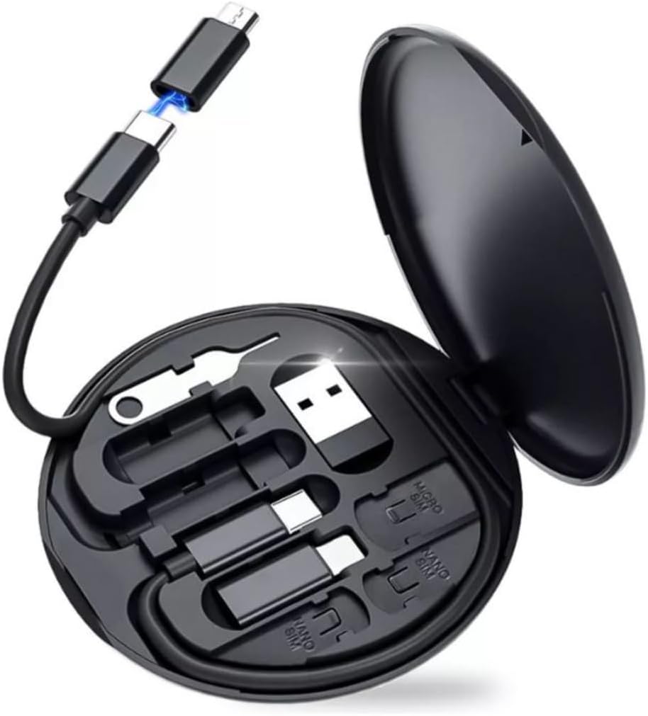 💼 Estojo compacto: armazena todos os adaptadores + pino ejetor de chip + slots para cartões SIM.