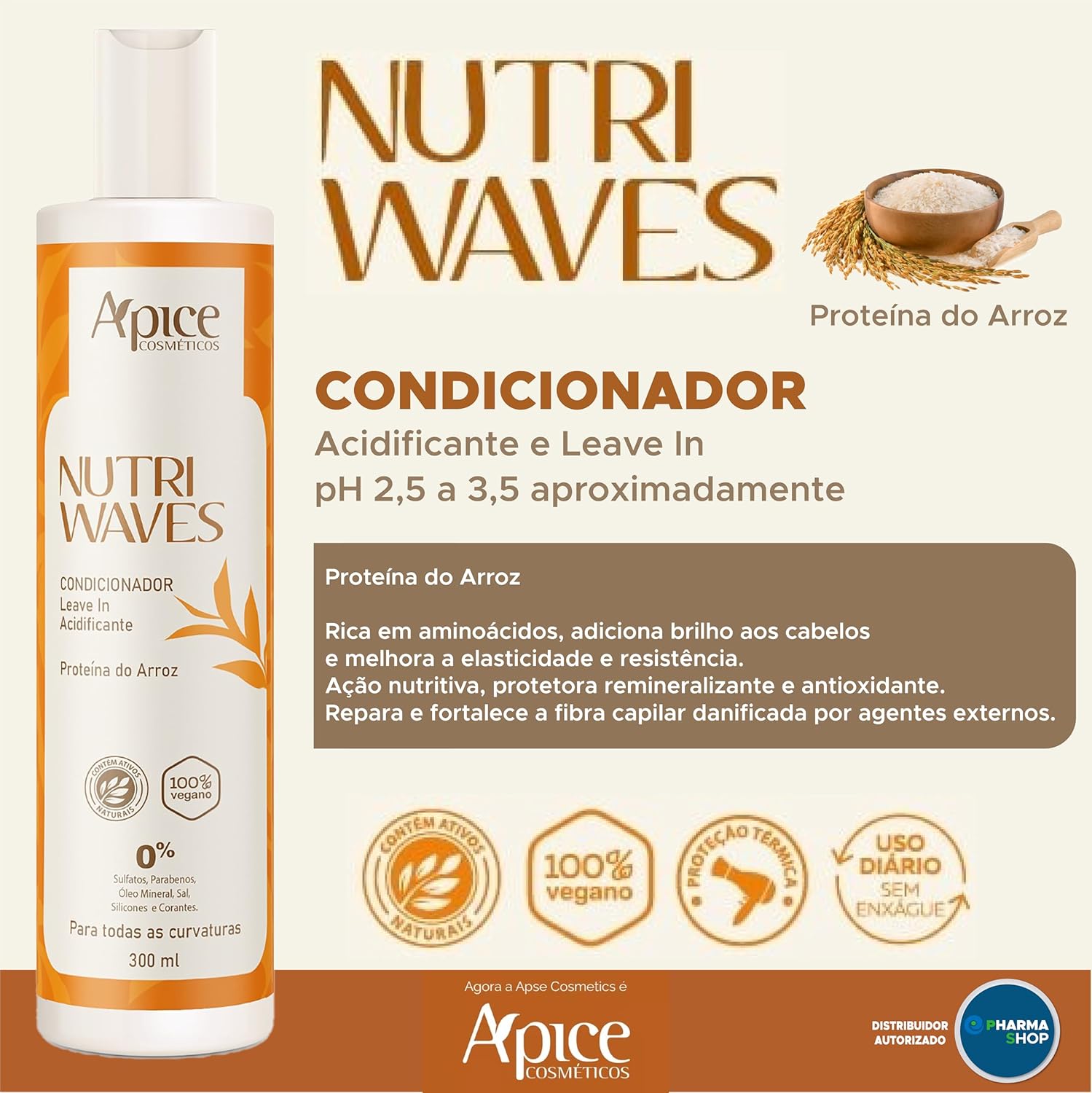 Kit Apse Cosmetetics Nutri Waves Shampoo Condicionador e Gelatina Acidificante Capilar Vegano Óleo de Pracaxi Proteina do Arroz Low Poo Anti Frizz Apice Cosmeticos