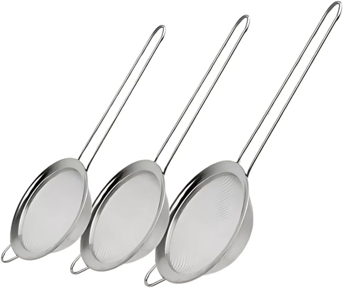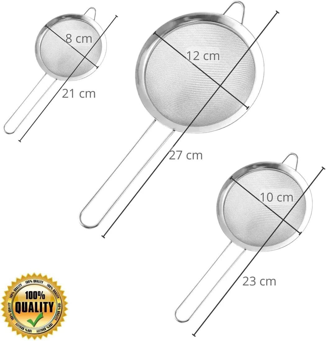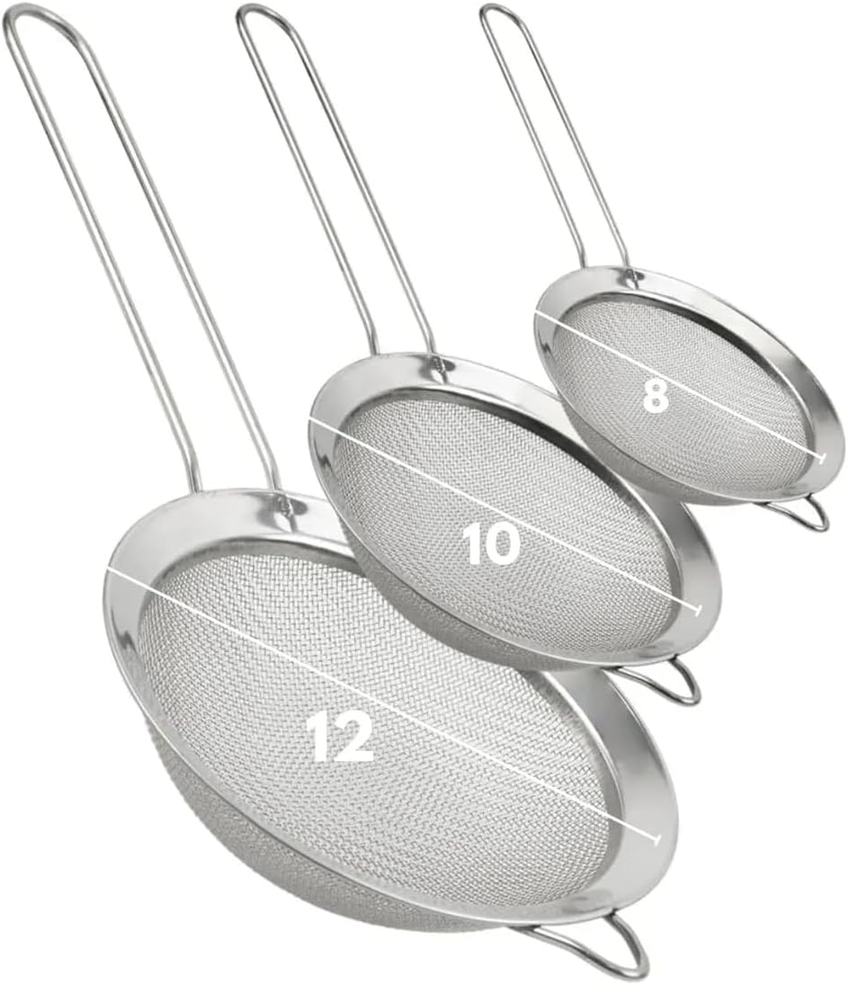 ✅ Tamanhos variados: Kit com 3 peneiras nos tamanhos 8cm, 10cm e 12cm, para usos diversos na cozinha.