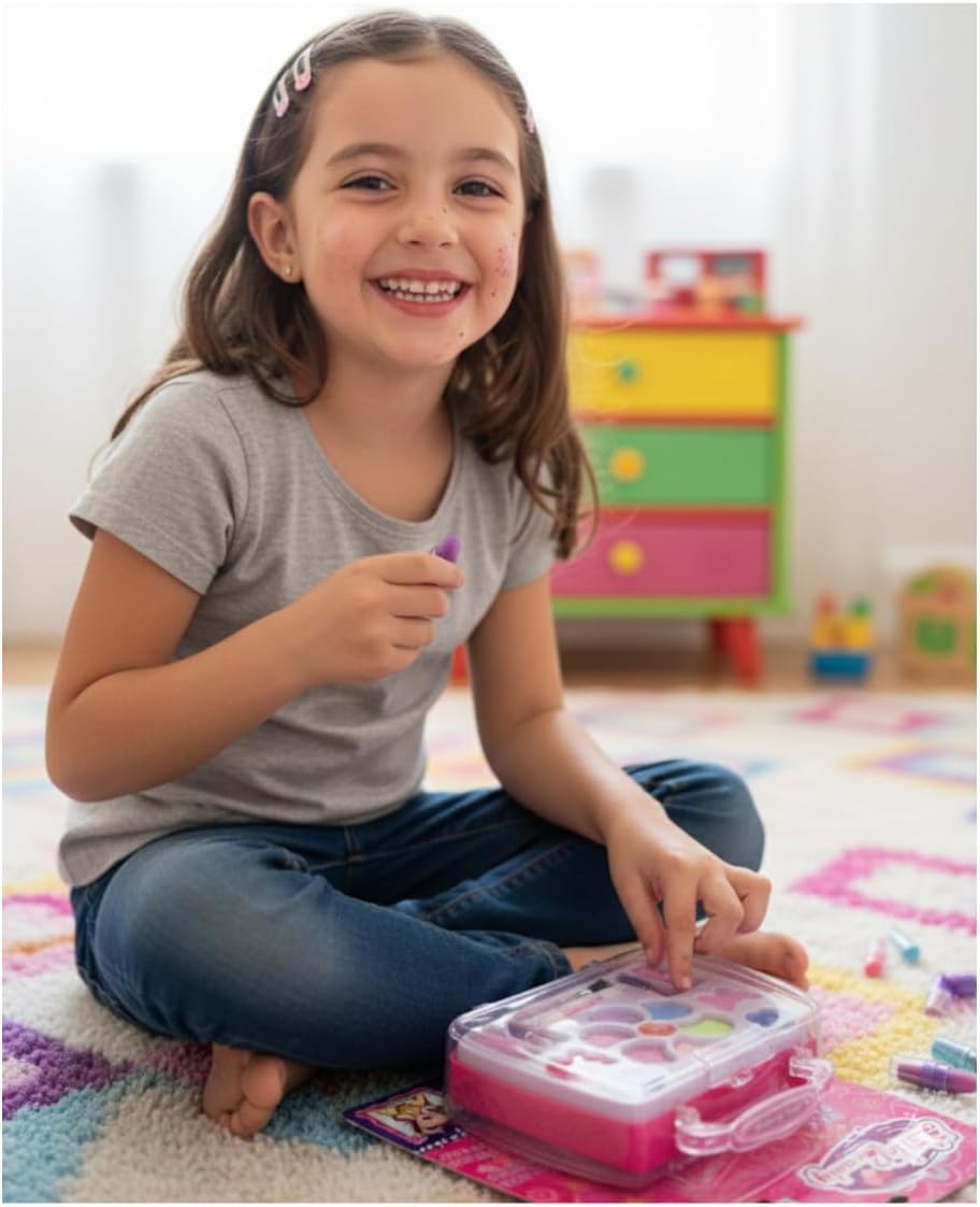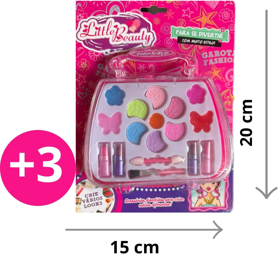 Este conjunto inclui sombras coloridas, batons divertidos e brilhos cintilantes, permitindo que a criança crie diferentes estilos e combinações, explorando a criatividade e experimentando sua própria estética de forma lúdica. Cada peça é desenvolvida para ser segura para a pele delicada das crianças, com fórmulas não tóxicas e fáceis de aplicar, garantindo diversão sem preocupações.