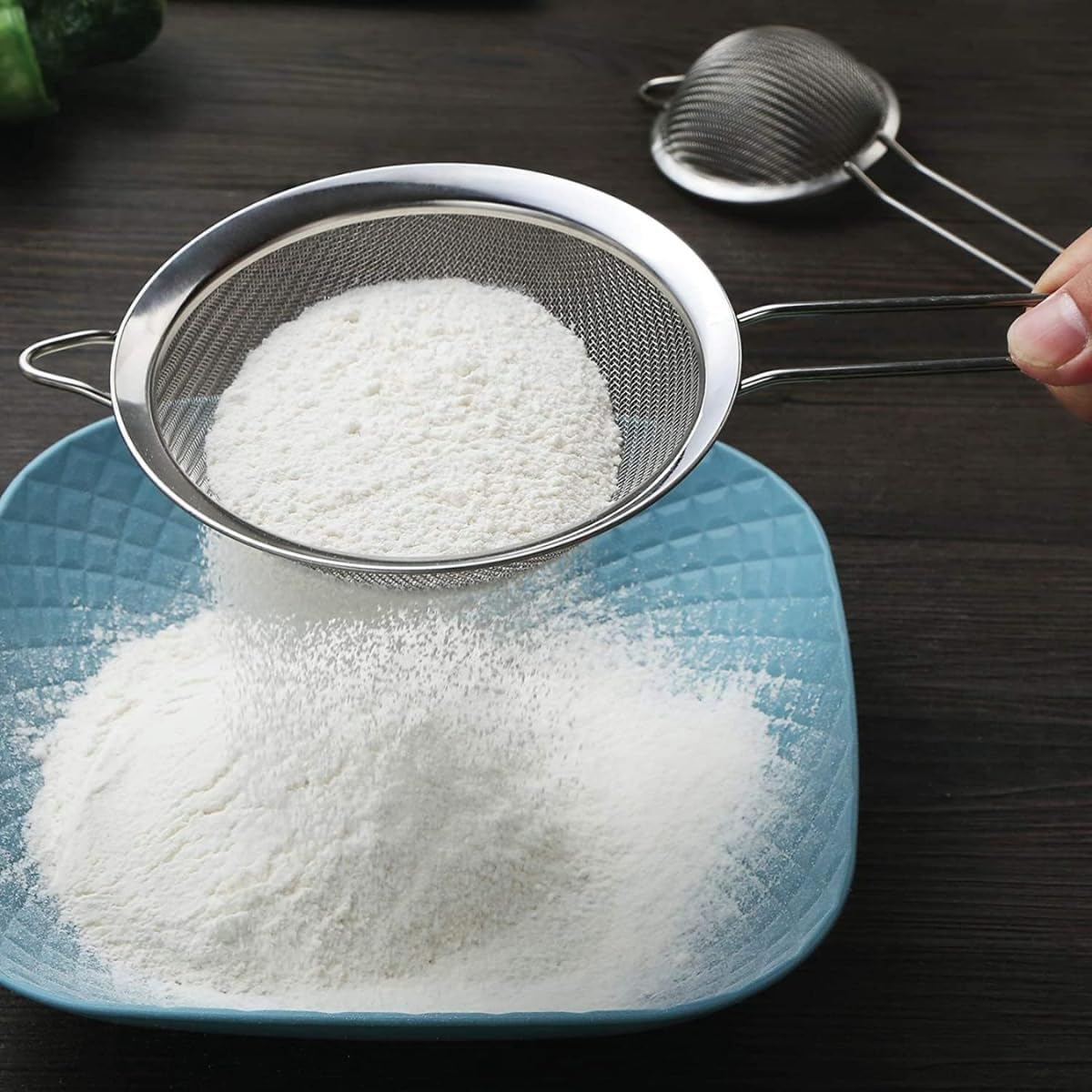 Kit peneira de cozinha inox 304 resistente indicado para coar farinha chá e alimentos variados