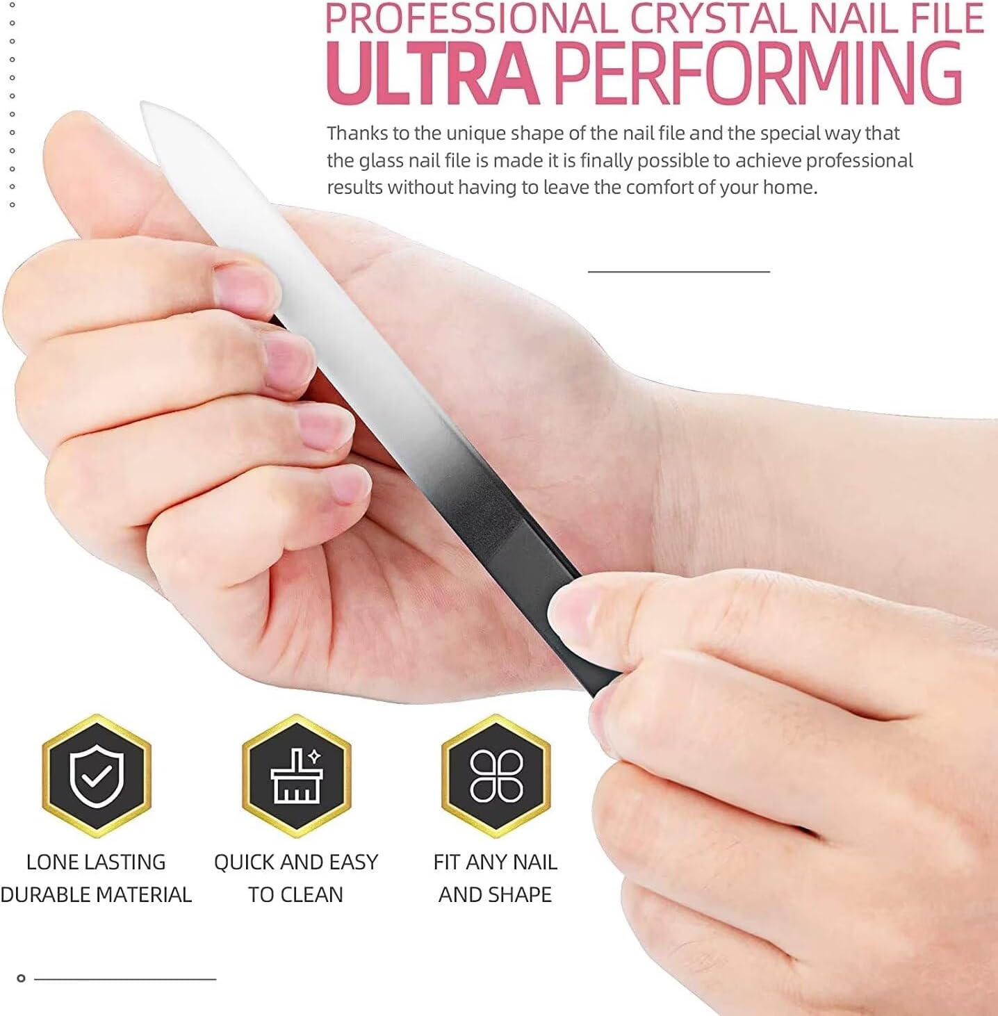 Lixa de unha de vidro: também conhecida como lixa de unha de cristal, esta lixa de unha de vidro pode ser usada regularmente para obter unhas fortes e lisas. Este lixador de unhas é adequado para todos os tipos de unhas.