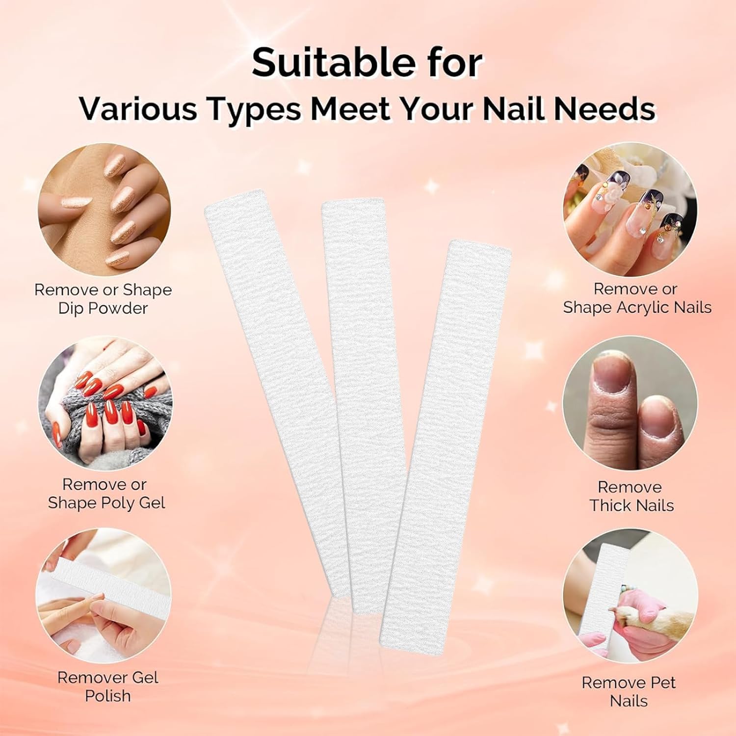 Lixas e amortecedores de unhas premium: são feitos de materiais de alta qualidade de lixa e lixa, resistentes e duráveis, não arranham ou danificam as unhas naturais.