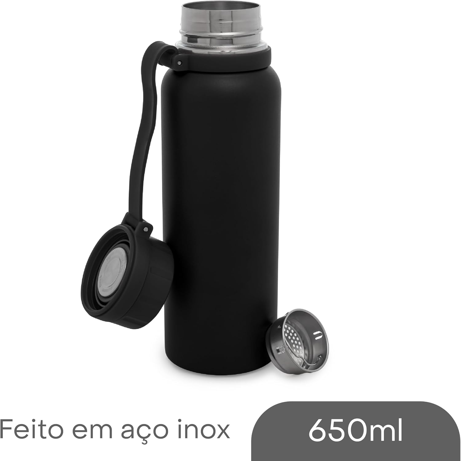 Conserva a temperatura ideal: Com capacidade para 650ml, esta garrafa mantém suas bebidas quentes por até 12 horas e frias por até 24 horas, garantindo que você desfrute de suas bebidas favoritas na temperatura perfeita, esteja onde estiver.