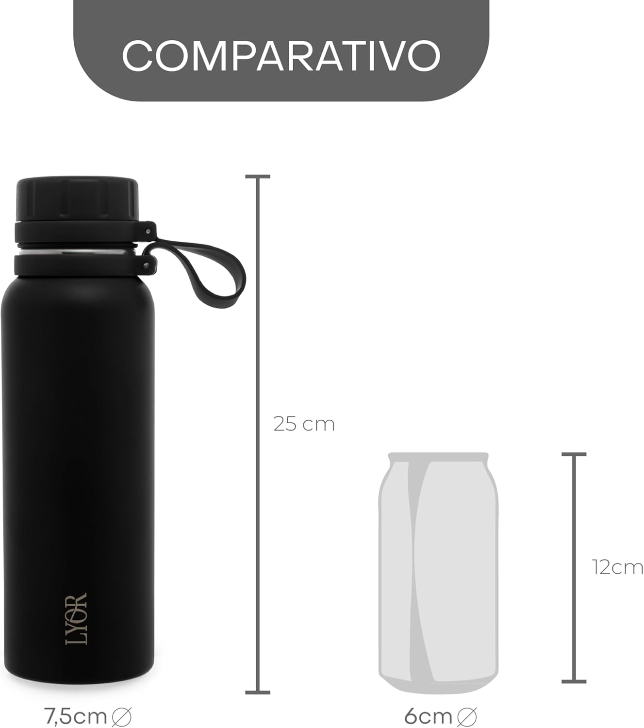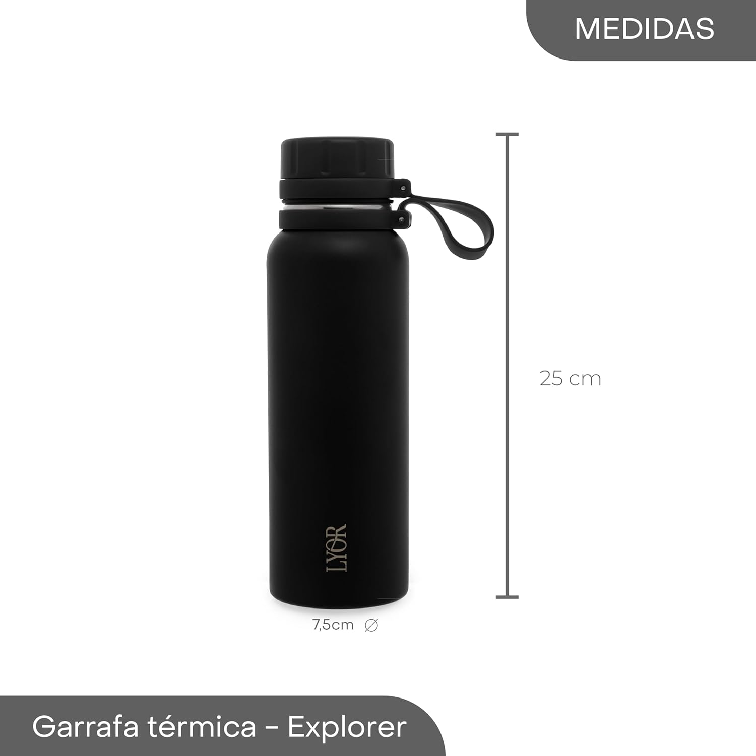 LYOR – Garrafa Térmica de Aço Inox Explorer Preta 650ml