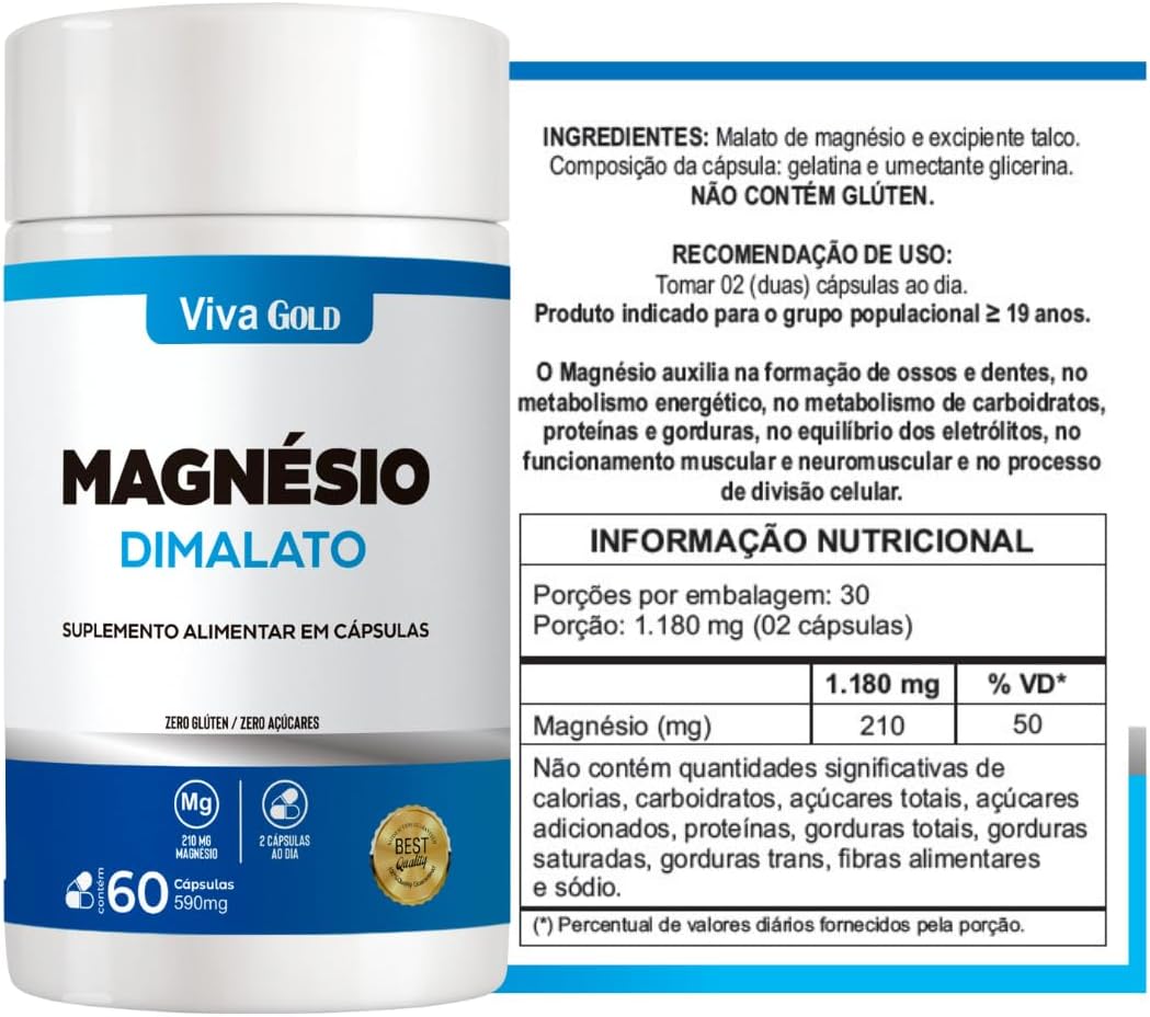 Magnésio Dimalato 590mg – 60 Cápsulas Suplemento com Alta Absorção
