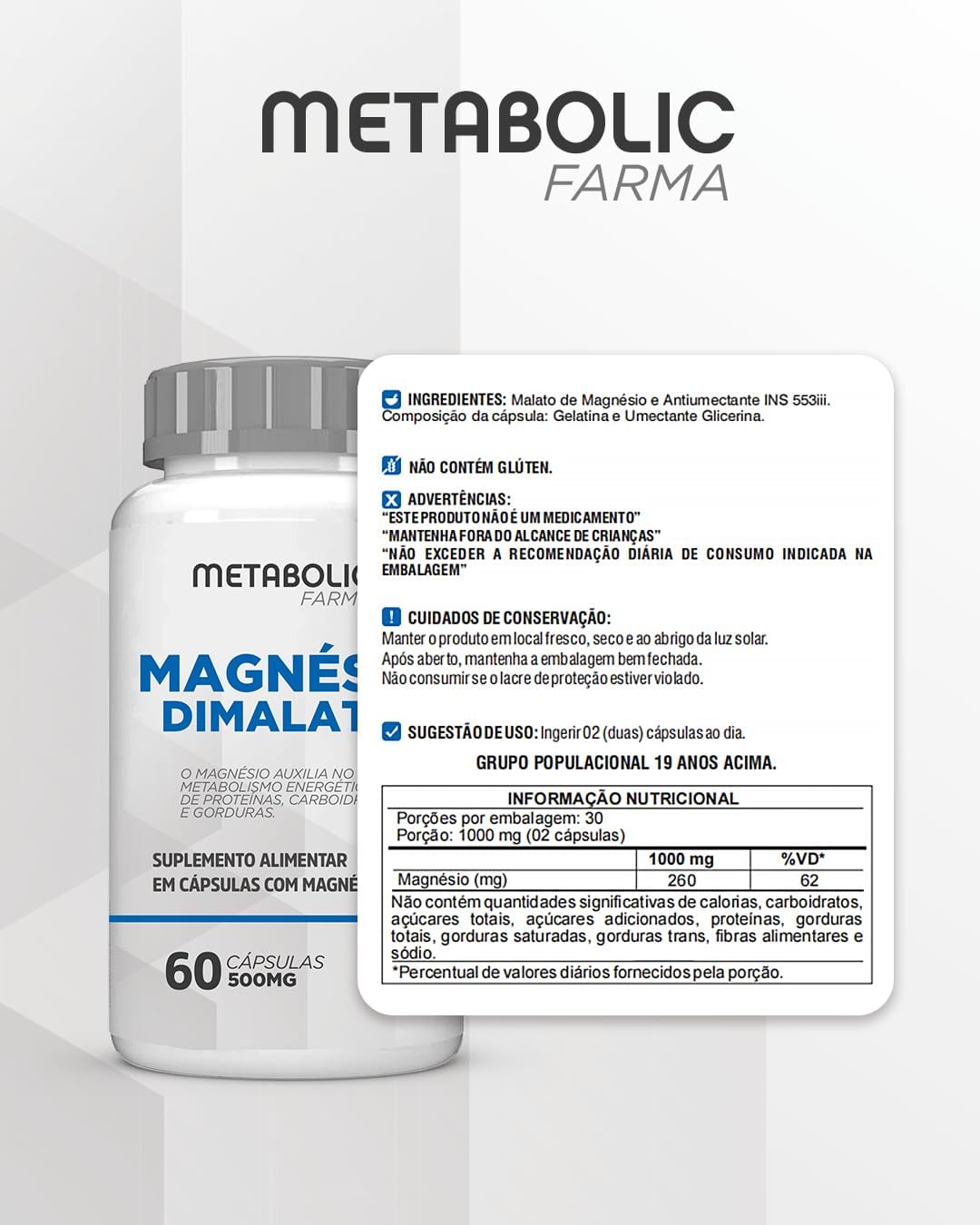 Magnesio Treonato + Dimalato + Coenzima Q10 500Mg 180 Cápsulas – Metabolic Farma
