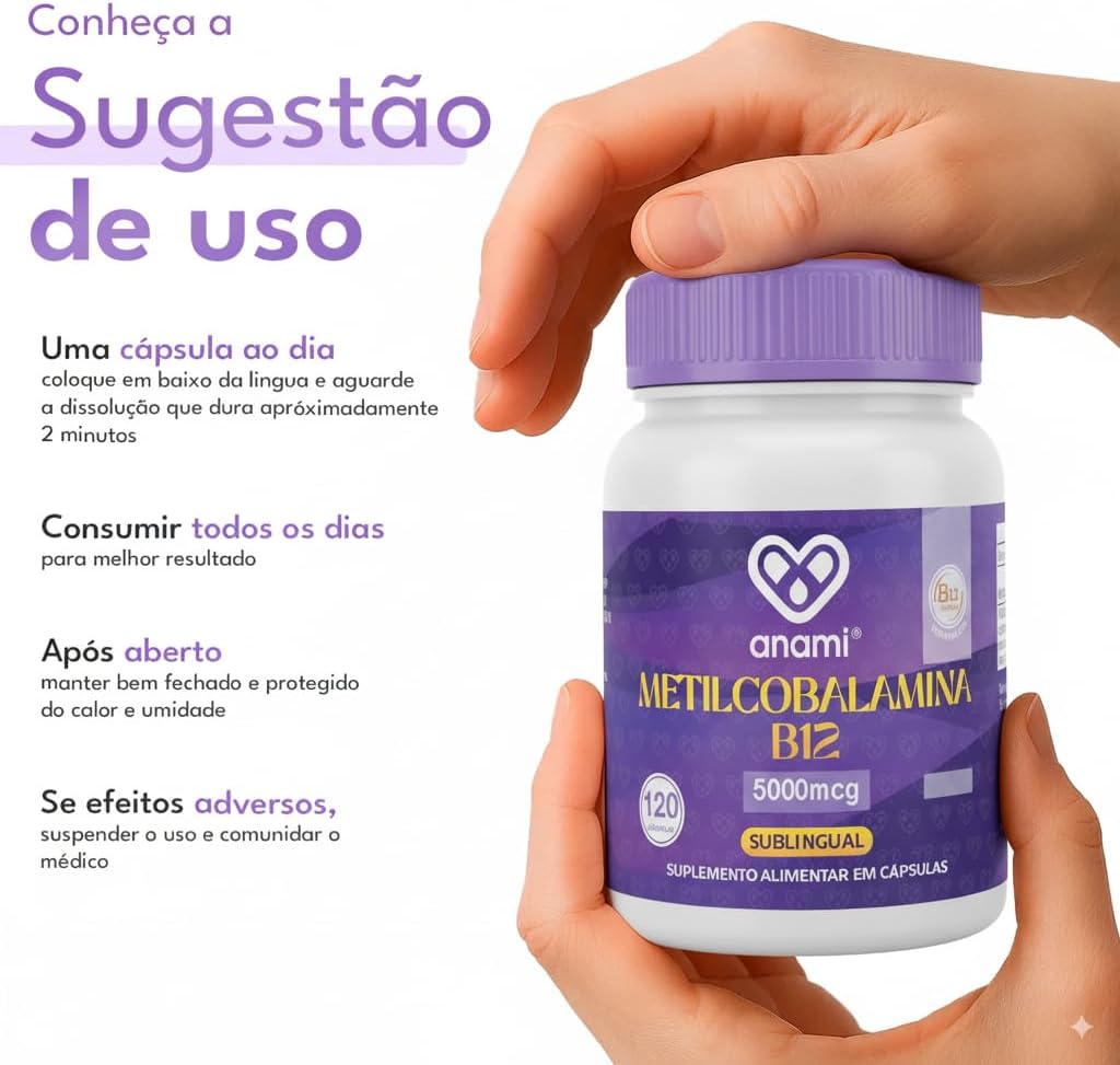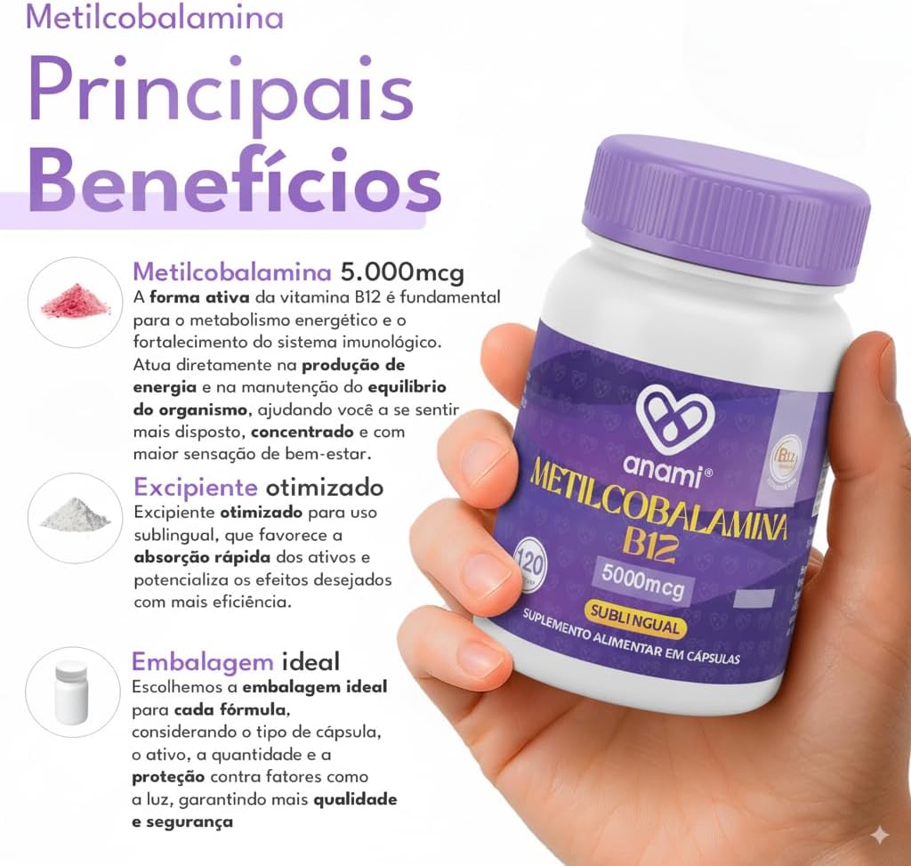 A Metilcobalamina 5.000mcg Sublingual – 120 Cápsulas da Anami Fórmulas é um suplemento alimentar desenvolvido para oferecer alta concentração de Vitamina B12 em sua forma ativa.