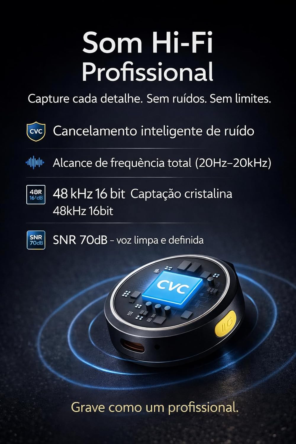 🔇 Cancelamento Inteligente de Ruído Ambiente A tecnologia avançada de redução de ruído minimiza interferências externas mantendo clareza vocal mesmo em ambientes movimentados. Ideal para produção de conteúdo profissional gravações urbanas transmissões ao vivo e entrevistas corporativas com padrão superior de áudio.