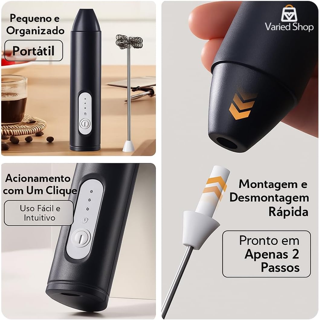 Misturador Elétrico Portátil Recarregável USB – Mini Mixer Fuê Elétrico Sem Fio para Café, Leite, Ovos e Bebidas | Mixer de Mão