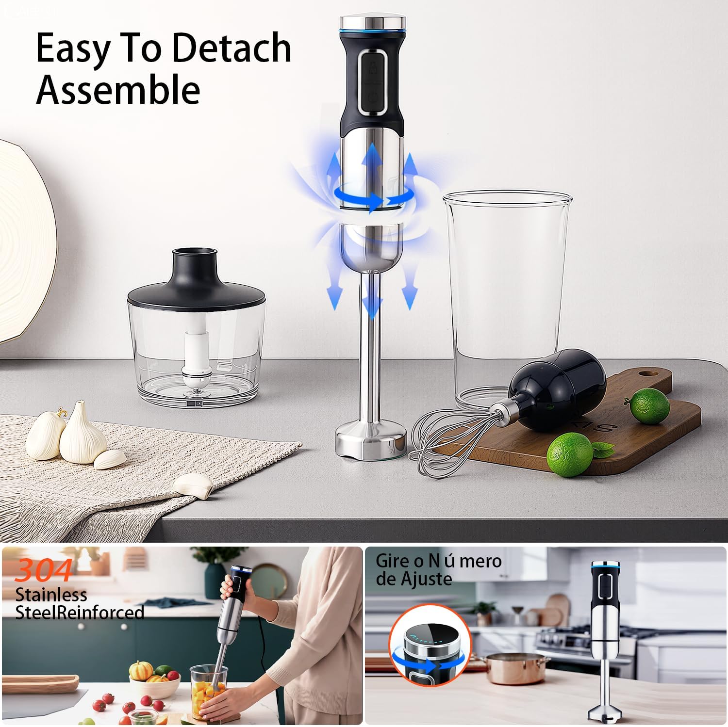 Mixer portátil 5 em 1, Ajuste de 8 velocidades, Com triturador, 304 lâmina de aço inoxidável, batedor de ovos, borbulhador e copo de medição, Adequado para sopas, smoothies e purés