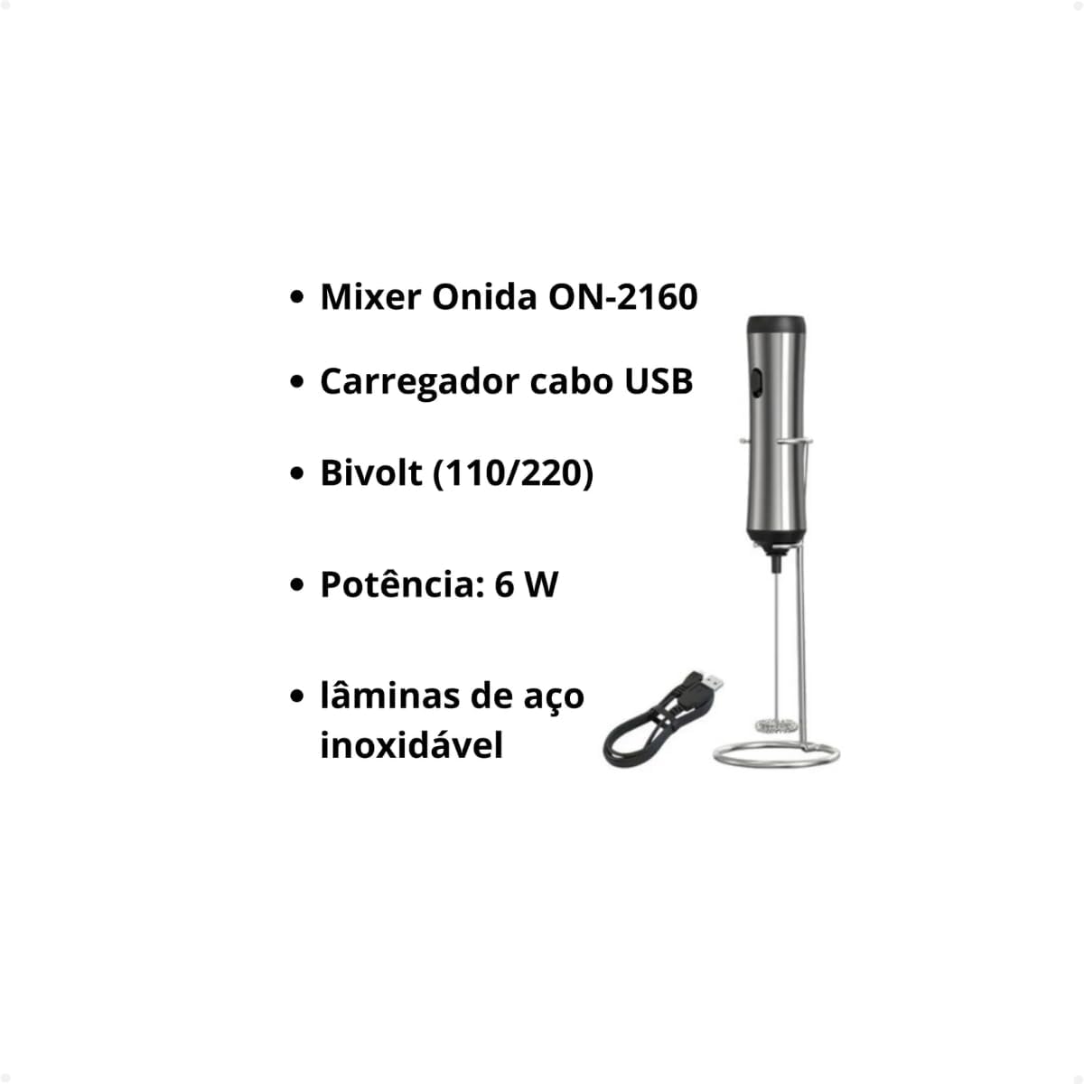 Mixer Portátil Onida ON-2160 com Suporte Recarregável USB Bivolt – Haste em Aço Inox, Lâmina Afiada, Compacto, Ideal para Bebidas, Shakes, Ovos, Molhos e Smoothies