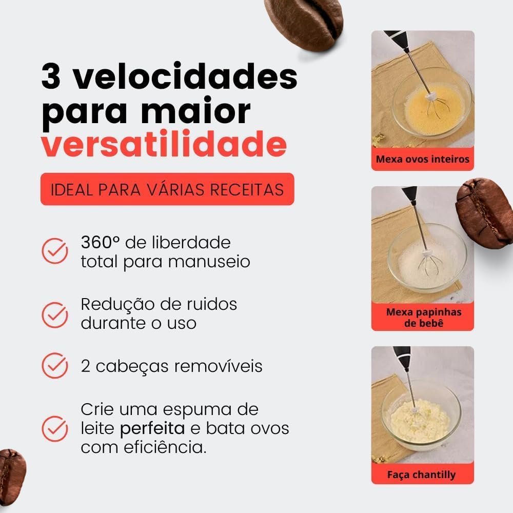☕ Espuma cremosa em segundos – Ideal para cappuccinos, lattes, achocolatados e shakes! Sinta o sabor e a textura profissional no conforto da sua casa.