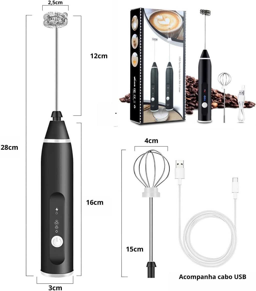 🔋 Carregamento de longa duração com carregamento USB – Mais liberdade e praticidade para preparar bebidas onde quiser, sem depender de tomadas ou pilhas!