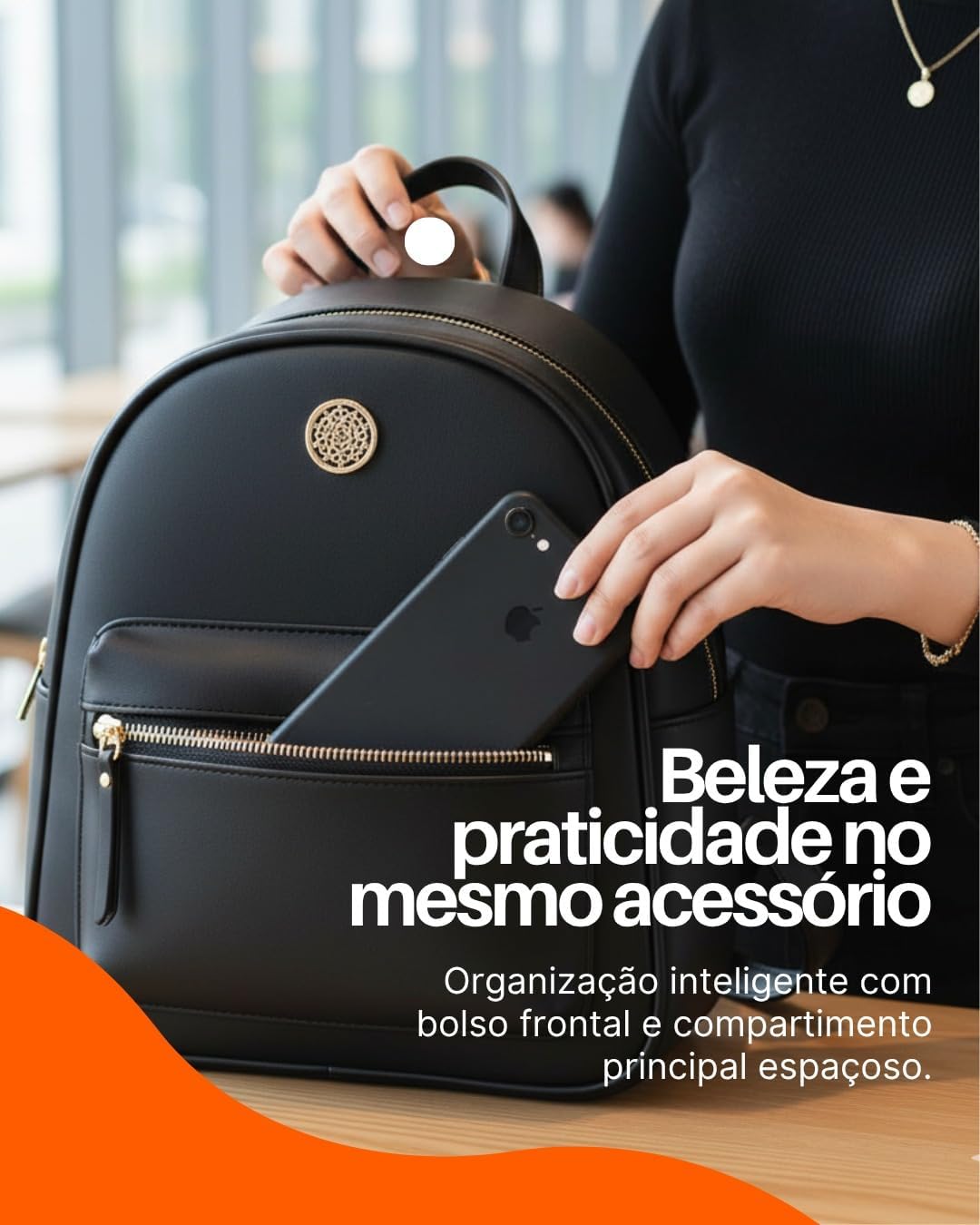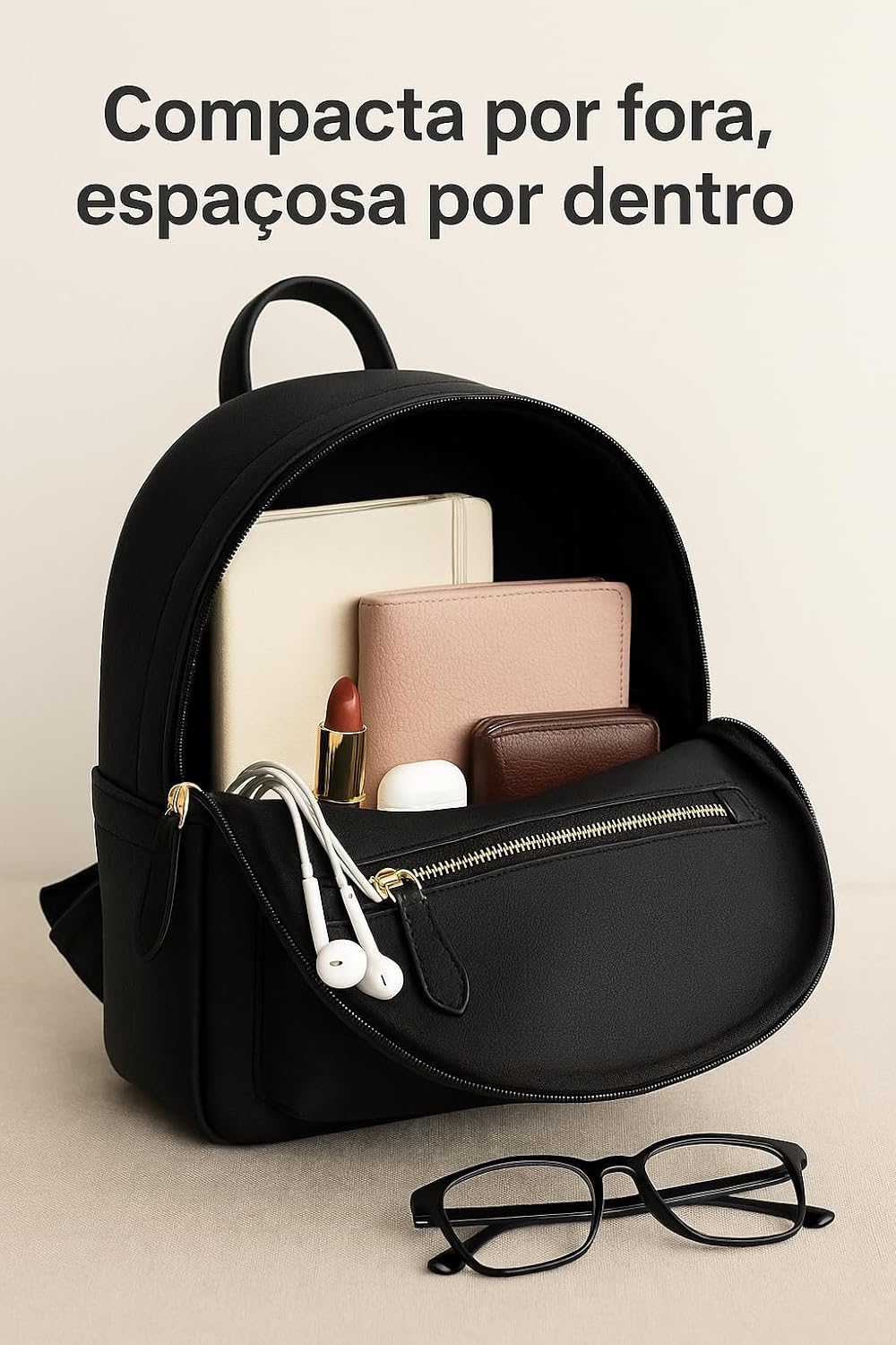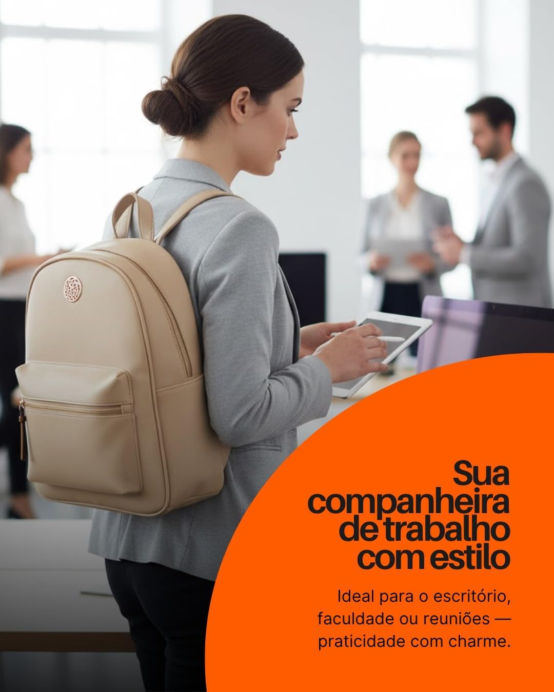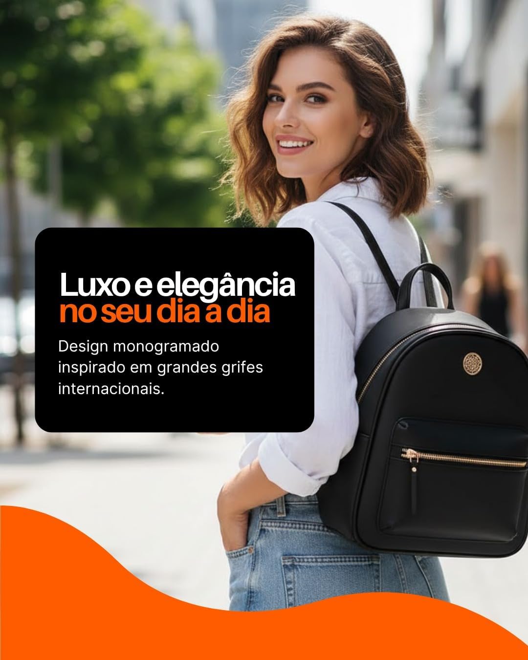 Mochila Feminina Luxo Monogramada Estilo Grife Internacional Alças Confortáveis Ajustáveis Zíper Dourado Espaço Interno Grande Bolsa Casual, Trabalho e Passeio