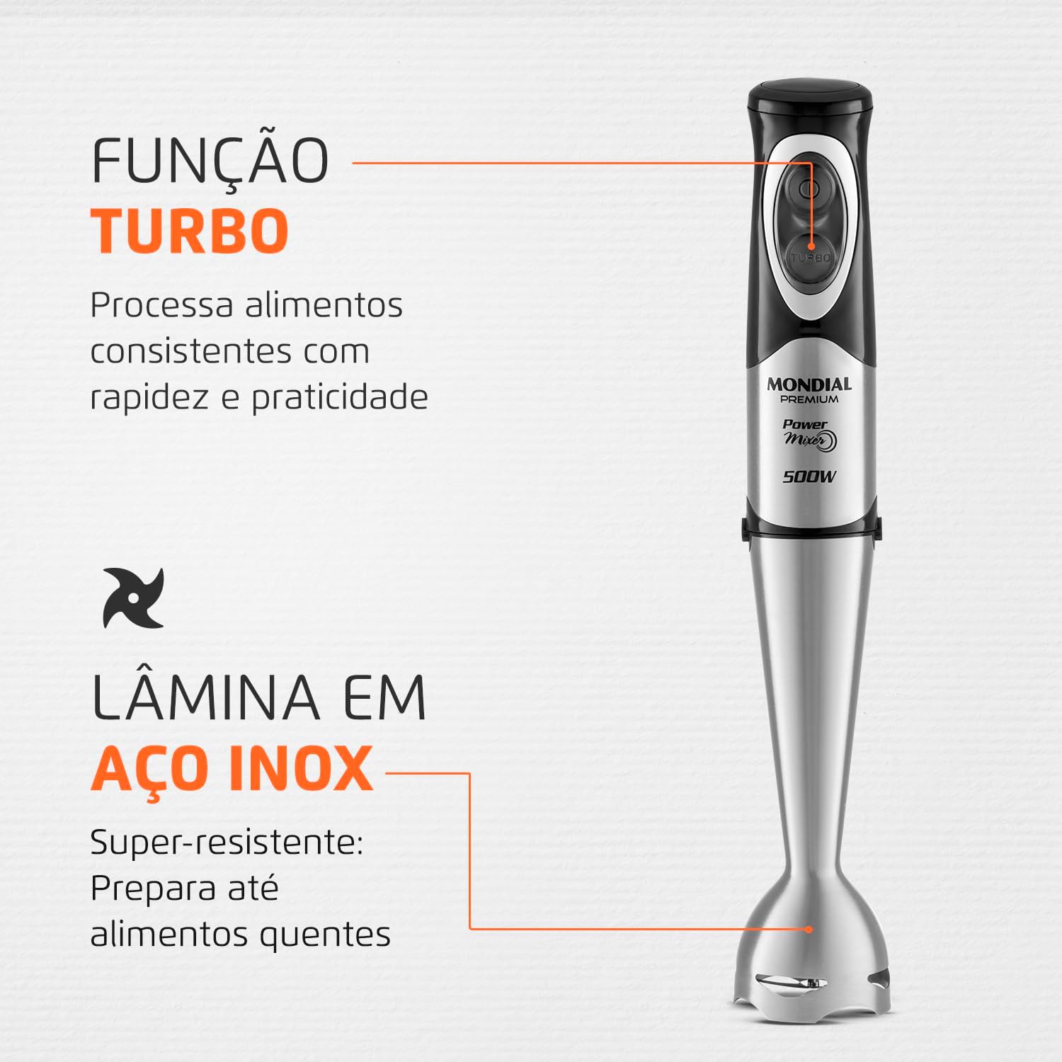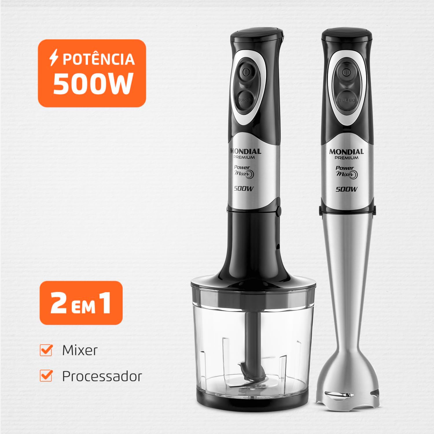POTÊNCIA DE 500W: Ótimo desempenho e mais agilidade nas receitas do dia a dia.