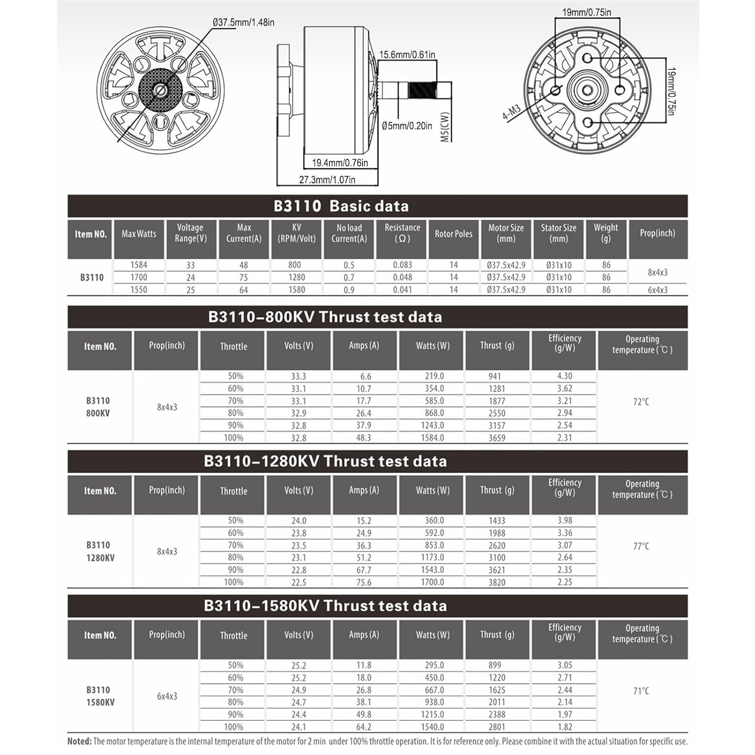 [Rotação suave] Rolamentos de e um eixo de aço leve garantem atrito mínimo, proporcionando rotação suave e desgaste reduzido ao longo do tempo.vôo de alta velocidade, este motor sem escova fornece impulso forte e operação suave, garantindo desempenho confiável para aplicações aéreas.0,5A, Pólos: 14