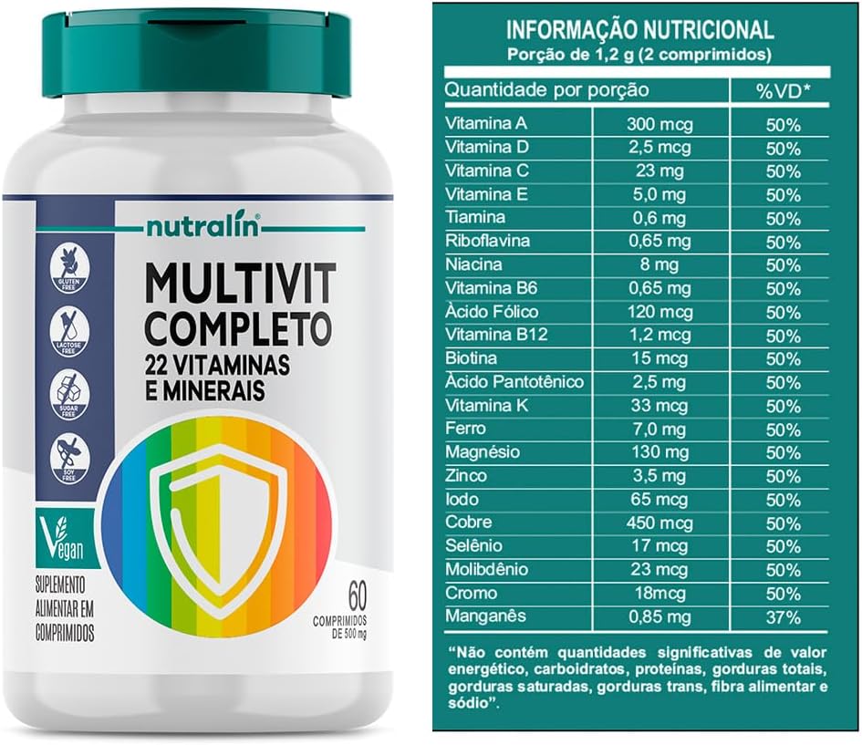 Multivitamínico Completo Vitaminas e Minerais 60 Comprimidos + Porta Cápsulas