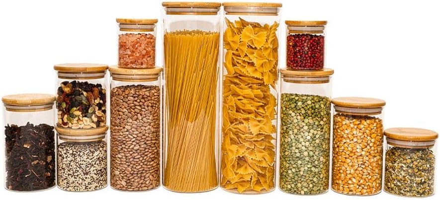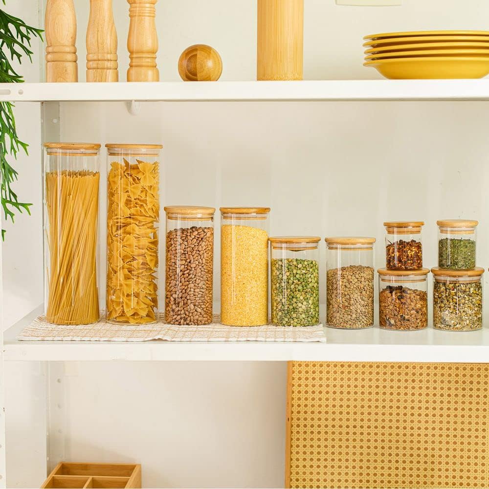 Oikos – Kit 11 Potes de Vidro com Tampa de Bambu Herméticos Redondos