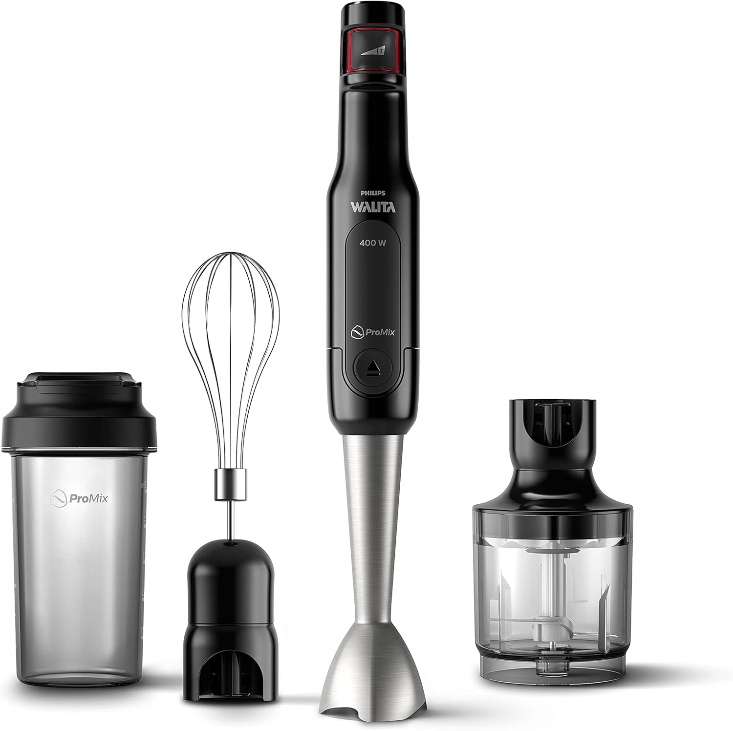 Philips Walita Preto e Inox Mixer Pro – Mix 4 em 1 – SpeedTouch com guia de velocidade – Copo para viagem – Fácil de limpar – 400W – 110V (RI2622/72)