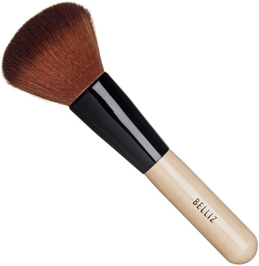 Pincel de maquiagem para aplicação de pós faciais. Cerdas sintéticas. Cabo em madeira. Para aplicar pós compactos e soltos em todo o rosto. Suas cerdas mais longas e macias proporcionam um acabamento leve e sem marcas. Seu tamanho compacto permite que seja levado na bolsa.