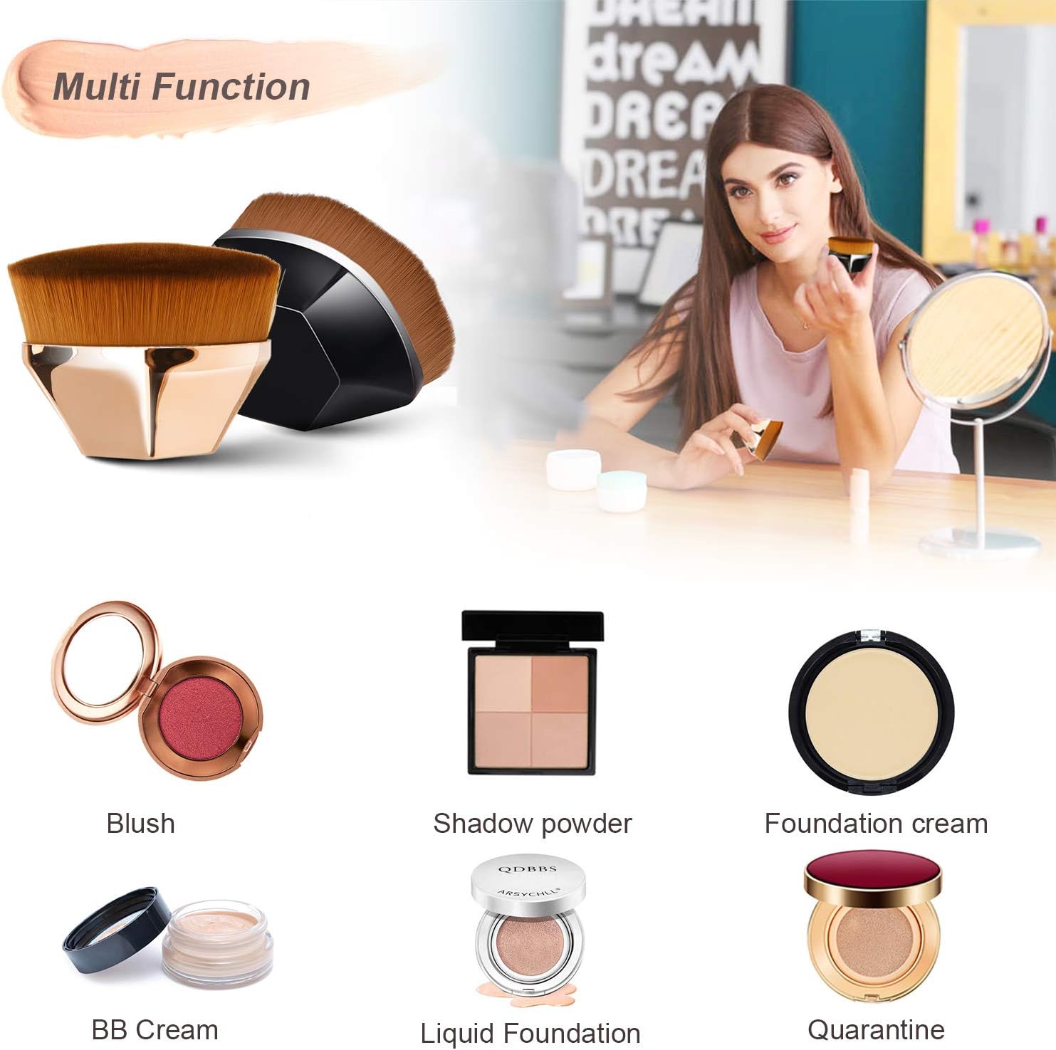 Multifuncional: maquiagem perfeita para todos os tipos de cosméticos: base líquida, blush, BB cream, sombra em pó, corretivo, etc. Não importa se é seco ou líquido, você conseguirá os melhores resultados.