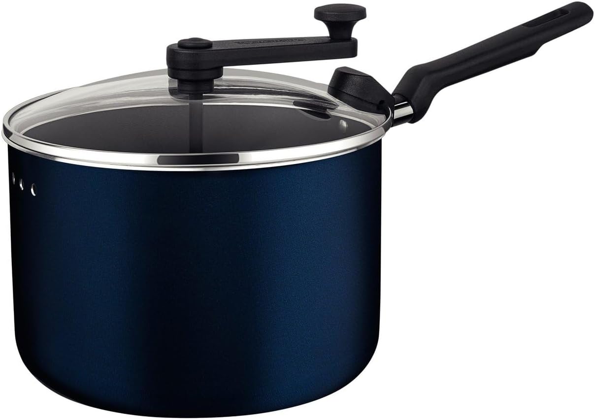 Corpo de alumínio com espessura de 1,6 mm que proporciona cozimento rápido e uniforme. Revestimento interno e externo de antiaderente Starflon Max que não gruda, é fácil de limpar, mais durável e não é prejudicial à saúde, pois é livre de PFOA. Tampa de vidro temperado com trava que se encaixa ao cabo: mais estabilidade no manuseio. Não gira durante o preparo. Trava antigiro. Cabo de baquelite antitérmico, manípulo e trava de nylon que oferecem segurança durante o manuseio.