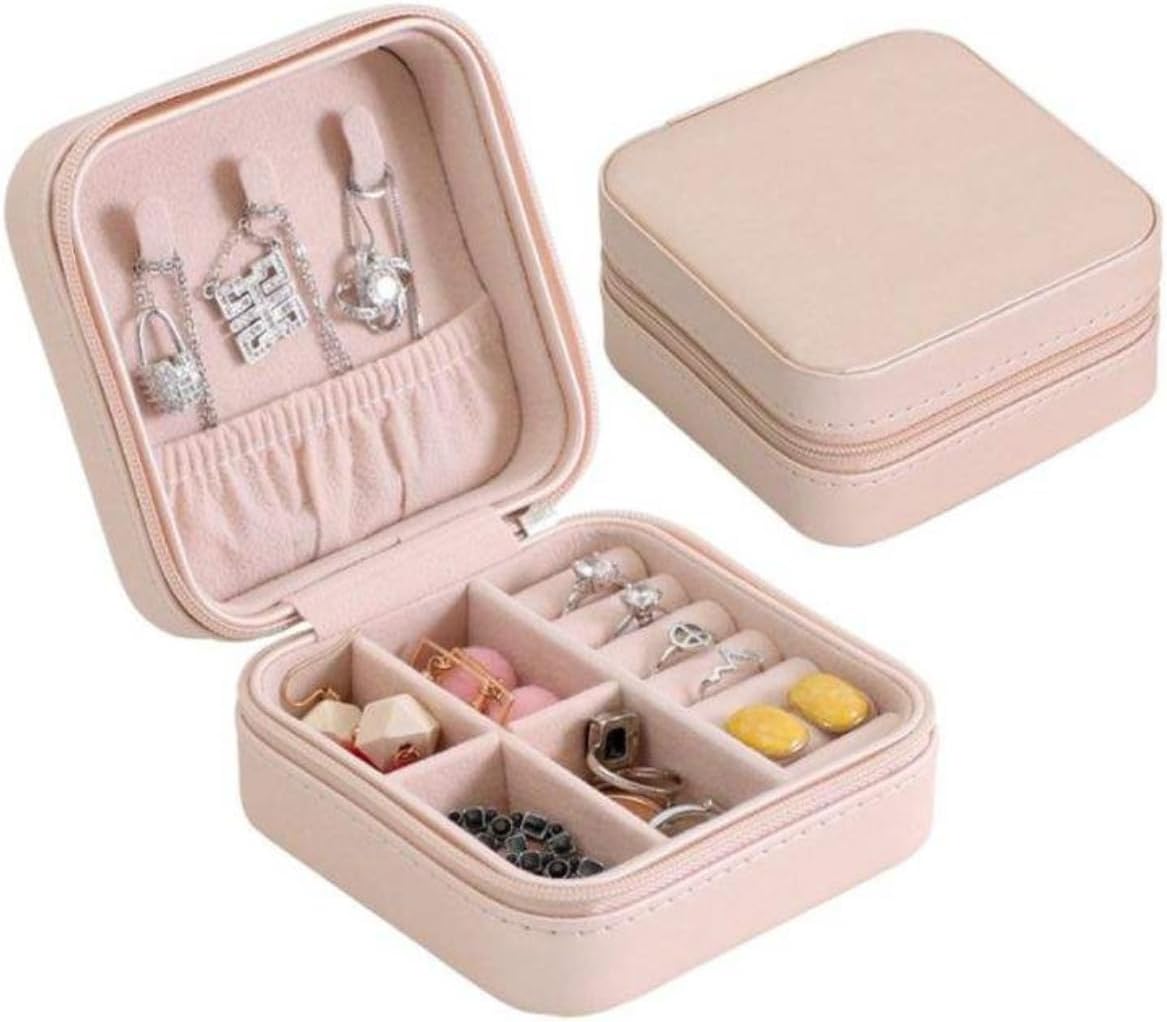 Porta Joias Pequeno Couro Portátil Mini Estojo Organizador de Joias Bijuterias Colar Pulseira Relógio Ideal para Viagens e Organização de Armário (Rosa)