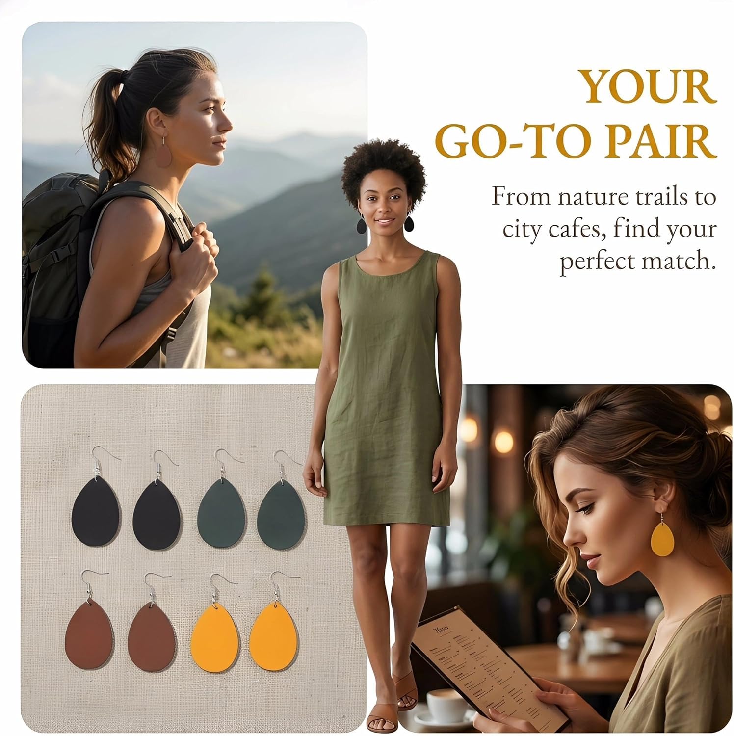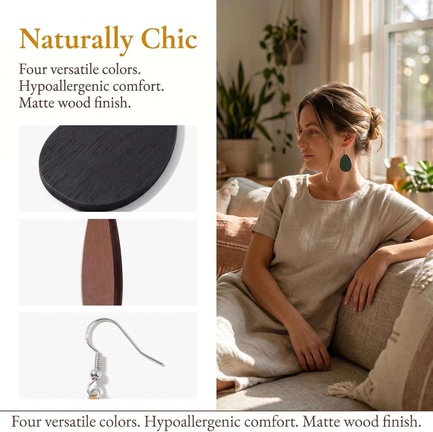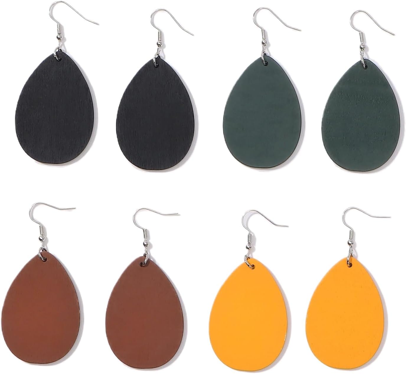 Preto, marrom, verde militar, quatro pares amarelos para um conjunto de brincos de madeira