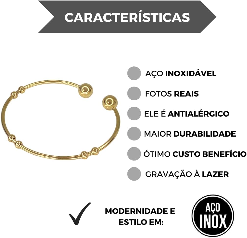 Pulseira Bracelete Feminina Dourada De Aço Inox Regulável