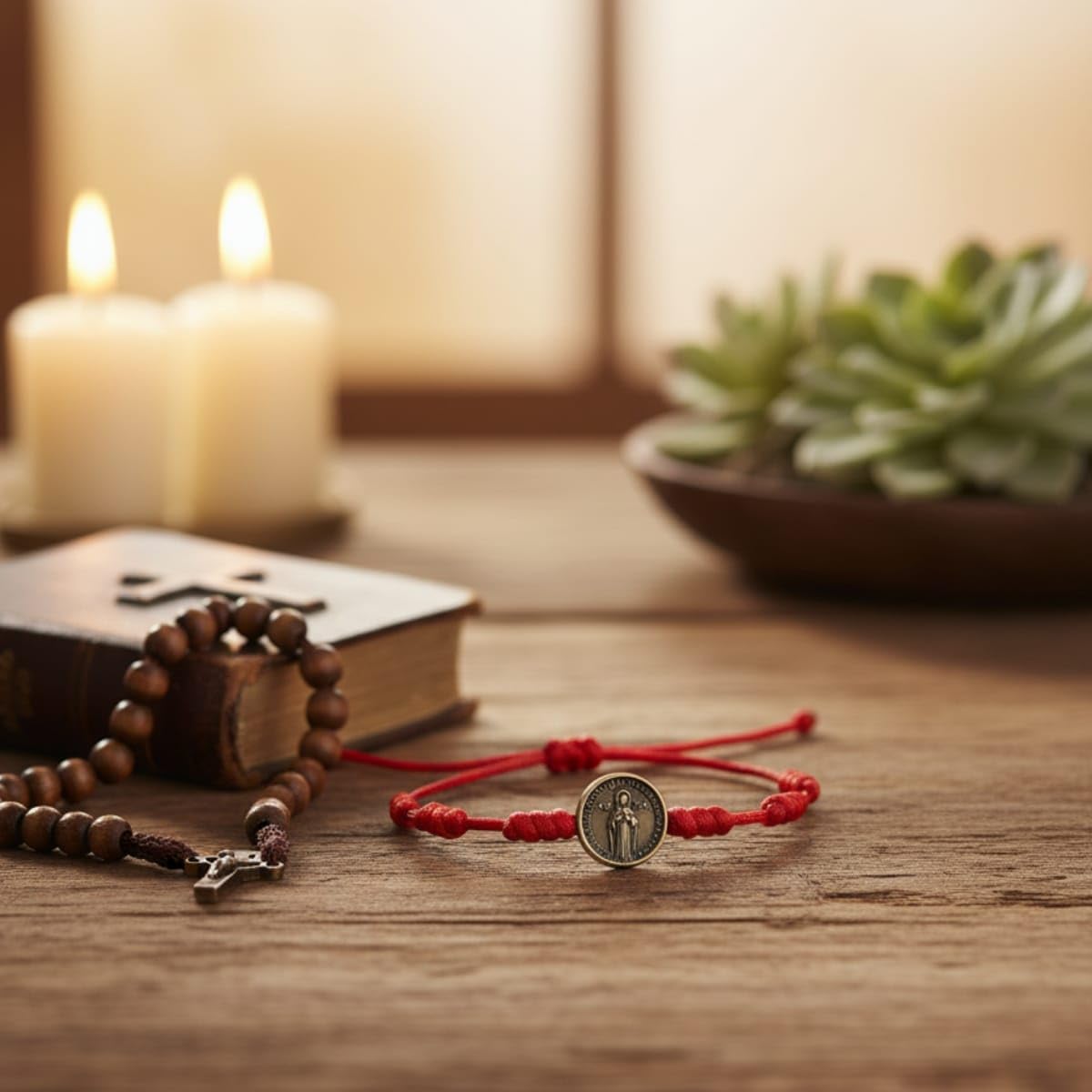 Descubra a pulseira São Bento 7 Nós, um símbolo tradicional de fé e proteção. Confeccionada com cordão vermelho resistente e medalha de São Bento em tom bronze envelhecido, esta pulseira ajustável apresenta sete nós artesanais que representam significado espiritual. A medalha traz o design clássico da Cruz de São Bento, conhecida como símbolo de proteção contra energias negativas. O fechamento ajustável permite que a pulseira se adapte confortavelmente a diferentes tamanhos de pulso. O cordão vermelho vibrante complementa perfeitamente a medalha antiga, criando uma peça versátil que pode ser usada diariamente como expressão de fé ou como um acessório significativo. Esta pulseira representa uma tradição centenária de devoção e é ideal para presentear alguém especial ou para uso pessoal como símbolo de proteção espiritual.