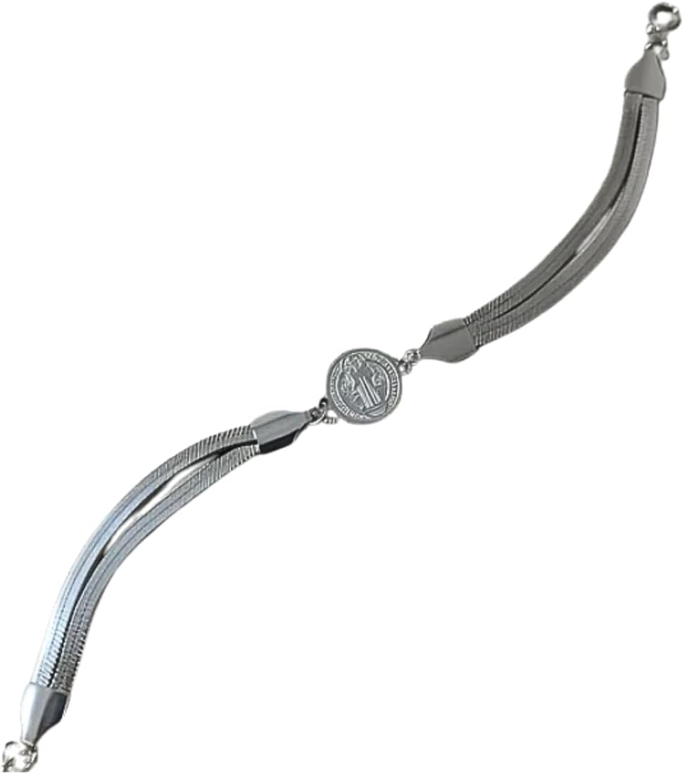 Pulseira Medalha de São Bento dupla – Pulseira de Aço Inoxidável feminina – presente feminino – Presente Religioso