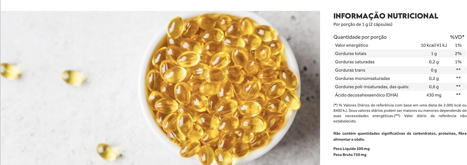 Ômega 3 Vegano DHA 100% vegetal, composto apenas por algas e envasado em cápsulas veganas; formulado com DHA da microalga Schizochytrium, um ácido graxo de cadeia longa essencial presente nas membranas celulares do cérebro, intestino e retina, com a mesma estrutura molecular do ômega 3 encontrado em peixes, moluscos e crustáceos; considerado um nutriente essencial pela ciência, deve ser ingerido por meio da alimentação ou suplementação; o Vegan Ômega 3 DHA da Puravida é feito com óleo de algas marinhas em cápsulas, produzido por um processo biotecnológico avançado em ambiente controlado.