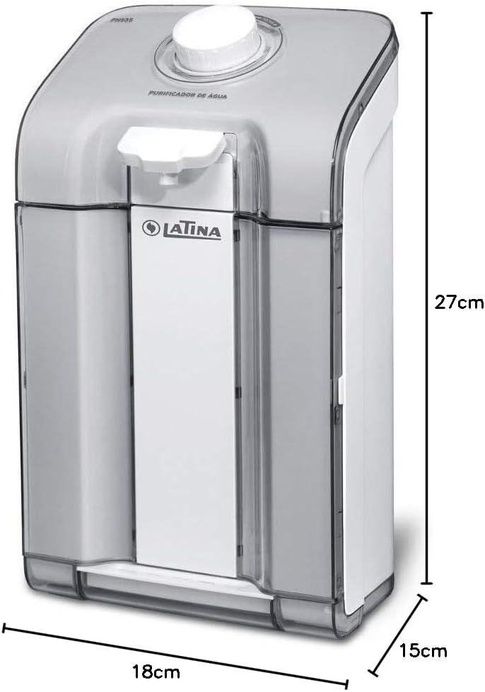 Purificador de água Latina PN535 Branco e Fumê O PN535 da Latina é um purificador de água natural, aprovado pelo Inmetro com excelente classificação para retenção de partículas e cloro. Além disso, esse produto tem bica retrátil para encher jarras, garrafas e lavar alimentos, bandeja removível e suporte de parede incorporado ao aparelho, podendo ser afixado na parede ou posicionado em cima de uma mesa ou pia porque é super compacto e não ocupa espaço. Seu fluxo de água é continuo, o que facilita na preparação de alimentos e bebidas para o dia –a- dia. Esse apareho é extremamente econômico porque além de não utilizar energia elétrica, seu filtro de reposição tem validade de um ano e é muito fácil comprar e trocar. O filtro de reposição do purificador de água PN535 é bacteriostático e impede a proliferação de micro-organismos como bactérias. Esse filtro é ecológico, seu carvão ativado é gerado a partir do endocarpo do coco de babaçu, o que agrega ainda mais valor a esse produto que atende aos critérios de responsabilidade ambiental. O PN535 está disponível nas cores Branco com Fumê ou Verde. Água pura e leve. Ideal para quem busca custo-benefício sem abrir mão da qualidade da água. Especificações Técnicas Garantia 12 meses Água natural Abastecimento: Rede de água pré-tratada. Pressão de trabalho: 0,4 a 4kgf/cm2 Bandeja removível Fluxo contínuo de água natural Bica retrátil (enche jarras e garrafas) Suporte para parede Incorporado ao produto Nanotecnologia Modelo do Filtro de Reposição: Filtro P655 Troca do Filtro de Reposição: 12 meses ou 5.000 litros de água Altura para copos até 22 cm na bandeja ou alturas superiores com a bica Dimensões sem emb. A x L x P (mm) 335 x 190 x 145 mm Dimensões com emb. A x L x P (mm) 370 x 195 x 160 mm Peso líquido 2 kg Cor: Branco e Fumê