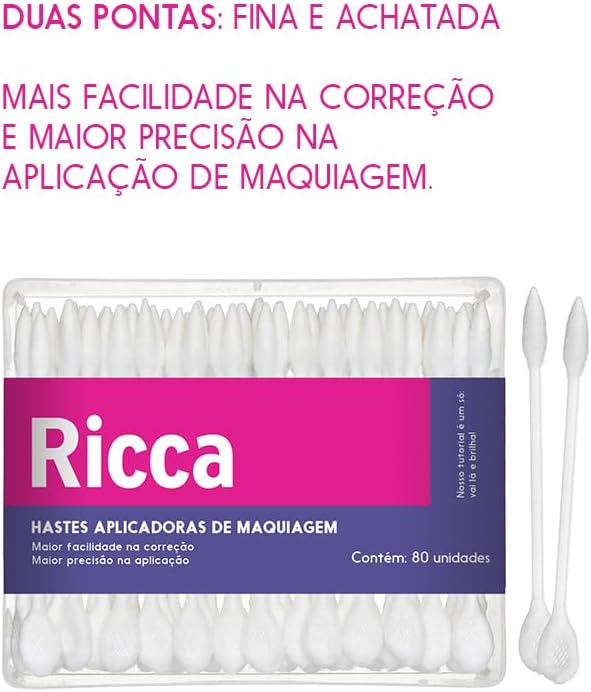 Haste descartável para aplicação de maquiagem com formato especial que permite maior precisção durante o processo. Possuem duas pontas diferenciadas para inúmeras utilidades, como aplicação de somas, correção de lápis nos olhos, dentre outras.