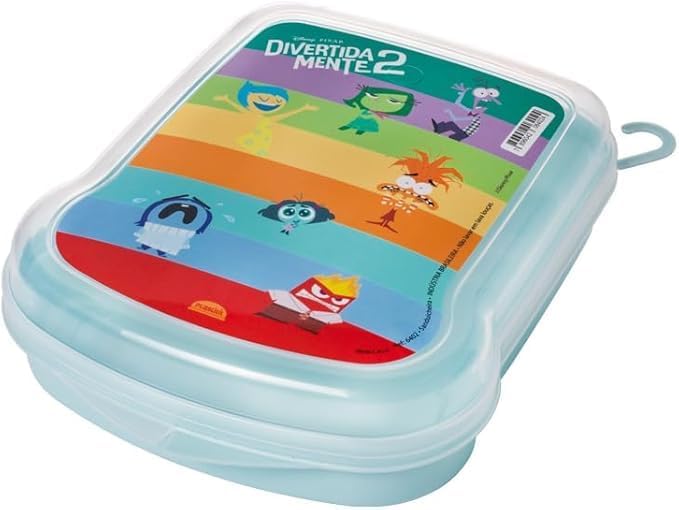 Lidar com as nossas emoções e sentimentos é um aprendizado constante. E com os personagens do Divertidamente entendemos como cuidar disso de forma bem-humorada e gentil. A sanduicheira possui tampa acoplada e aba para facilitar a abertura. É um produto ideal para lancheiras escolares e bolsas de passeio.
