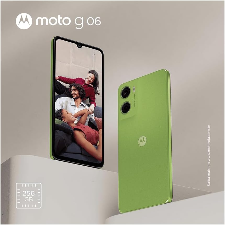 Smartphone Motorola Moto g06-256GB 12GB (4GB RAM + 8GB Ram Boost) e Camera 50MP com AI Bateria de 5200 mAh Tela 6.9″ – Verde