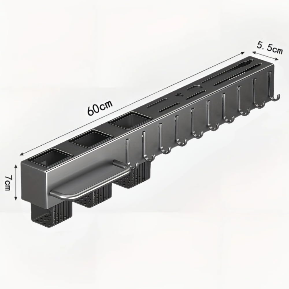 Organização e Versatilidade: Este porta-utensílios multifuncional é ideal para manter uma bancada sempre limpa e organizada. Perfeito para facas, talheres, toalha e diversos itens de cozinha, o suporte ajuda a melhorar o espaço, tanto em casa quanto em estabelecimentos comerciais.