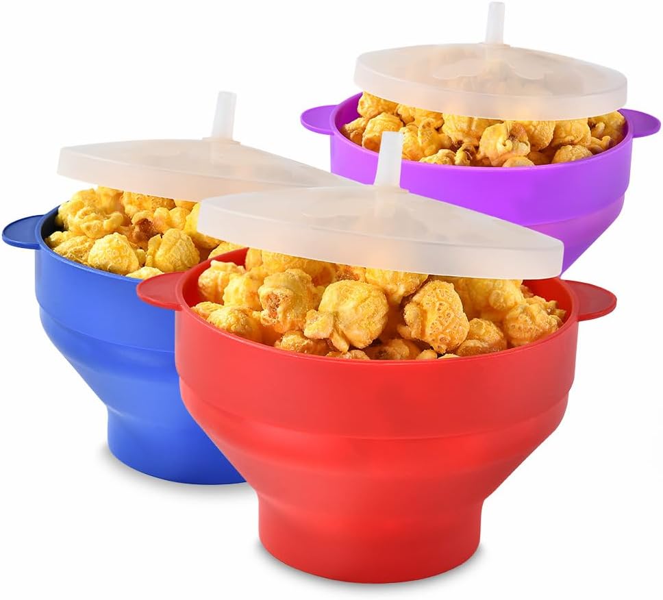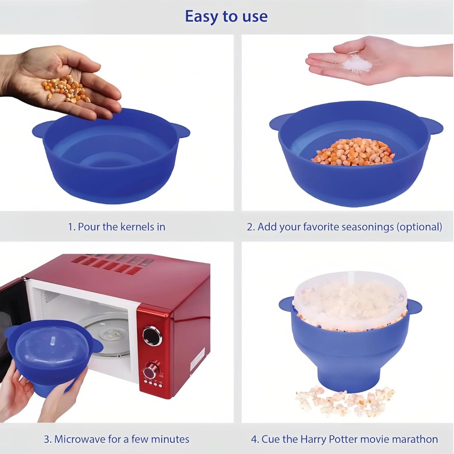 Tigela de silicone para pipoca – Segura para forno e micro-ondas | Tamanho pessoal de 2 xícaras | Design dobrável Faça pipoca perfeita em 90 segundos – sem óleo, produtos químicos ou adivinhações! Nossa inovadora tigela de silicone transforma grãos em lanches fofos usando qualquer micro-ondas ou forno (até 230°C/230.0 °C), superando o desempenho dos poppers apenas para micro-ondas. Projetado para minimalistas e amantes de lanches: Pesando apenas 90 g (mais leve que um ovo!) e dobrável ultrafino (12,5 x 12,5 x 3,5 cm), ele desaparece em pequenas cozinhas, mochilas ou gavetas de escritório. A tampa de bloqueio retém o calor para 100% de grãos estourados e zero derramamentos. 455 ml (2 xícaras) = porções sem culpa. Ideal para contadores de calorias, noites de cinema solo ou viagens de trailer. Feito de silicone premium livre de BPA, ele pode ser lavado instantaneamente ou pode ser lavado na lava-louças. Apoiado por nossa garantia vitalícia – se rachar ou manchar, nós o substituímos gratuitamente. Finalmente: Liberdade de pipoca sem dores de cabeça de armazenamento ou sacos de desperdício!