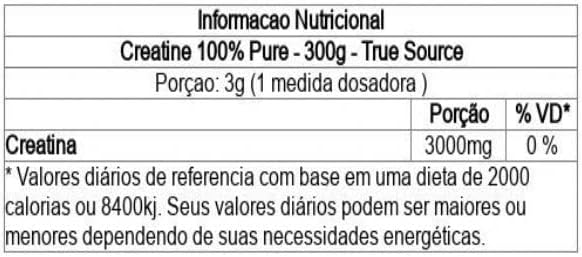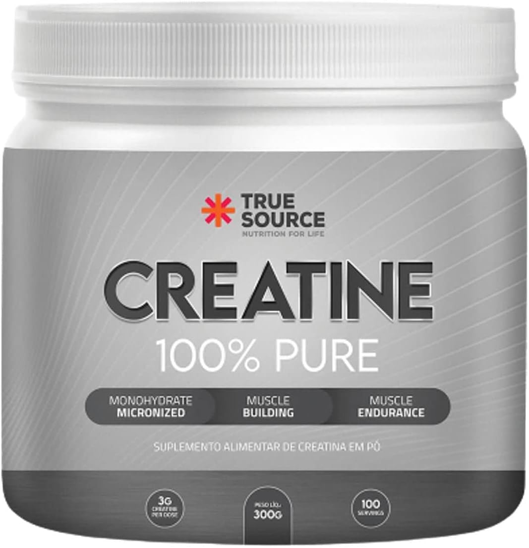 True Creatine 100% Pure da True Source é um suplemento alimentar em pó composto por creatina monohidratada.