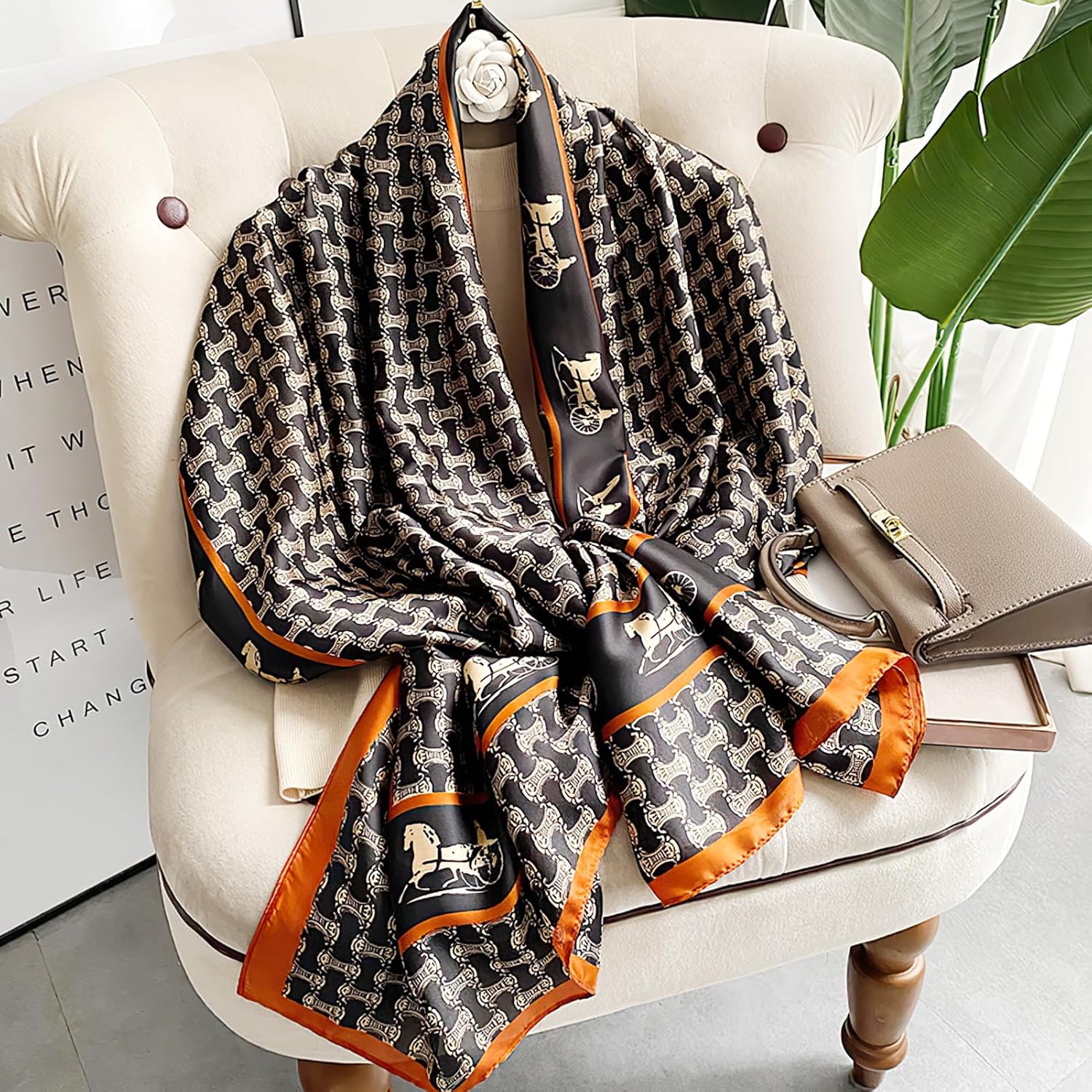 vimate Cachecol 100% grande com sensação de seda – Lenço feminino leve de seda longo protetor solar xale cachecol de pescoço embalado para presente