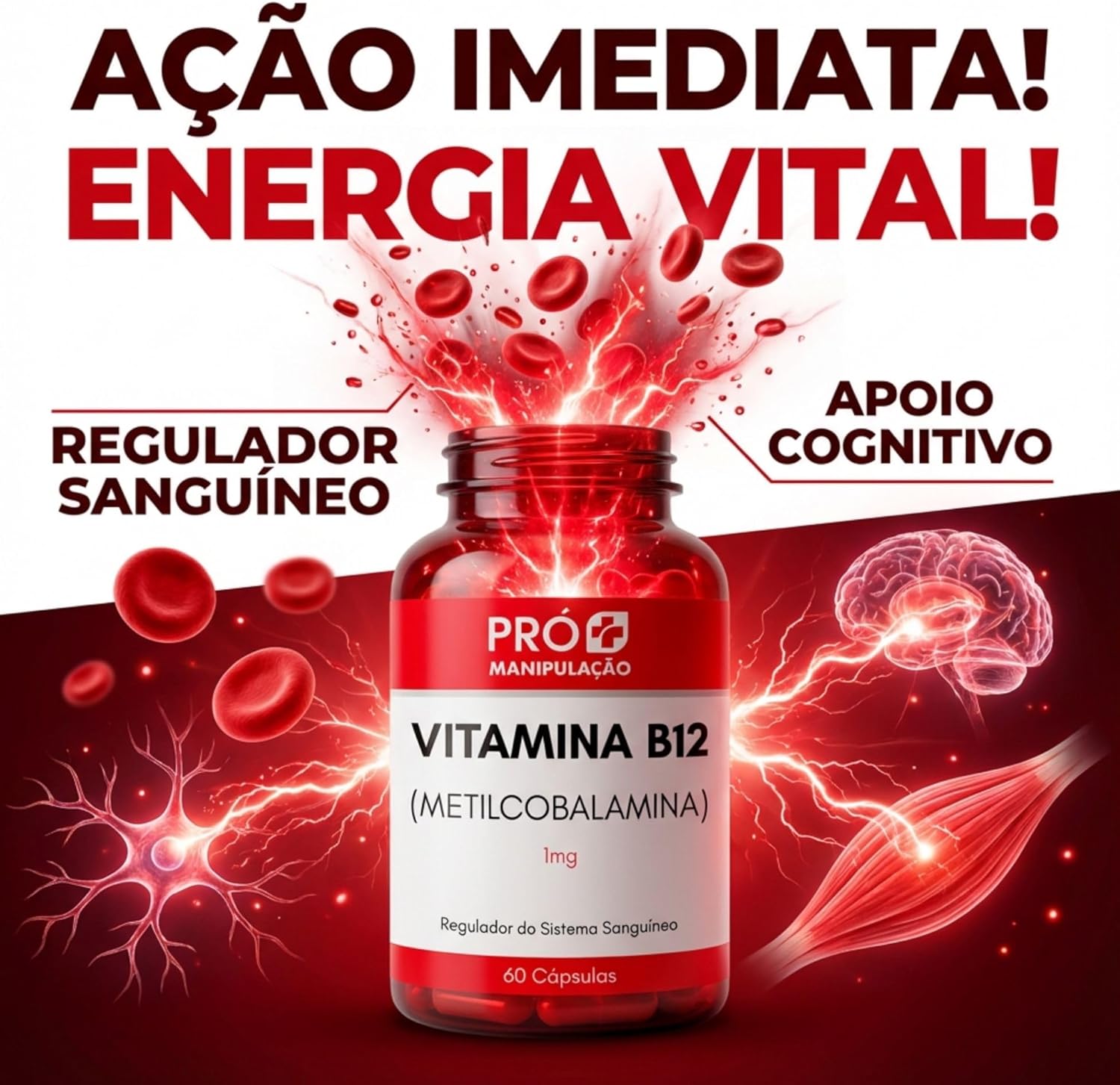 Vitamina B12 60 Cápsulas – Pró Manipulação COBALAMINA | ENERGIA, IMUNIDADE E SAÚDE DO SANGUE COMPOSIÇÃO (a cada 1 cápsula): Vitamina B12 (metilcobalamina) Excipiente q.s.p 1 cápsula SUGESTÃO DE USO: Tomar 1 cápsula ao dia ou conforme orientação de um profissional habilitado. VALIDADE: 12 meses Atenção (Uso e Indicação) Este produto é um suplemento alimentar e seu uso deve ser orientado por um profissional habilitado (médico, nutricionista ou farmacêutico) para garantir a dosagem e o objetivo mais adequado à sua saúde. Farmacêutico Responsável: Dr. Marcos Vinícius Nova CRF 36533/SP Produto isento de registro em conformidade com o anexo I da RDC 27/2010, e com a EDC 23/2000 da ANVISA.